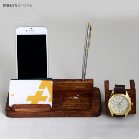 ست رومیزی چوبی جا موبایلی و ساعت ست رومیزی چوبی جا موبایلی و ساعت
