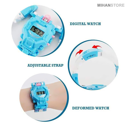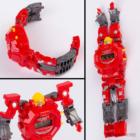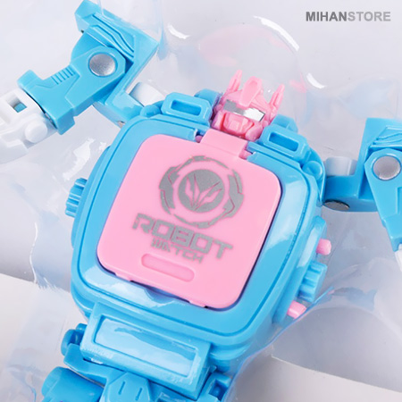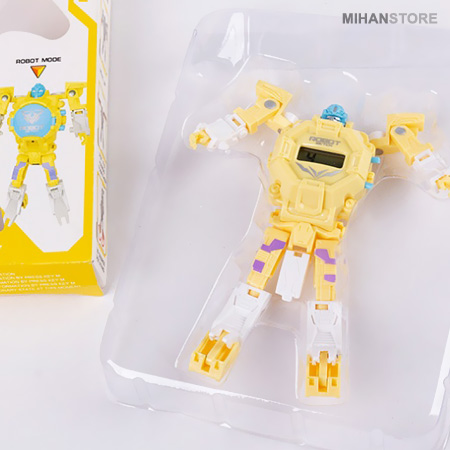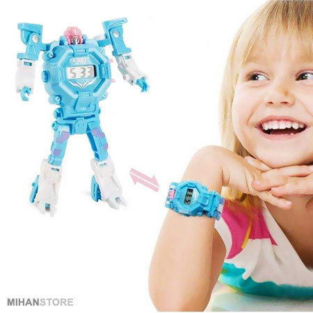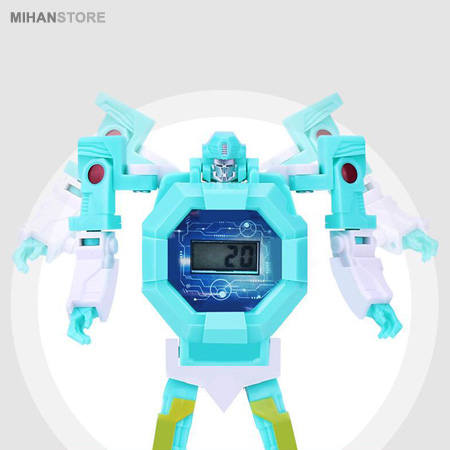 ساعت مچی می تواند هدیه ای خارق العاده برای کودکان باشد تا در آنها احساس بزرگ و مهم شدن را تداعی کند. اما یاد دادن زمان به بچه ها کمی زمان بر و مشکل می باشد و گاهی از حوصله بچه ها خارج است، اما تحقیقات نشان داده که سخت ترین موارد آموزشی را می توان با بازی و تفریح گونه به کودکان آموزش داد، بدون اینکه آنها احساس خستگی بکنند و آموزش برای آنها کسالت بار باشد. ربات تبدیل شونده به ساعت، محصولی با تلفیقی بسیار زیبا و ظریف از یک ساعت مچی و یک ربات اسباب بازی می باشد. ربات تبدیل شونده به ساعت دارای قابلیت تغییرحالت مختلف می باشد و کودک شما هرگز از داشتن آن خسته نخواهد شد. نمایش زمان در این ساعت الکترونیکی LED به صورت دیجیتال می باشد. این محصول می تواند هدیه ای خارق العاده برای کودکان شما باشد که علاوه بر قابلیت بسته شدن بر روی دست، با تغییر حالت به صورت یک ربات می تواند یک اسباب بازی دوست داشتنی و مورد پسند کودک شما باشد که ساعت ها او را مشغول بازی کردن و افزایش خلاقیت و مهارت می کند.