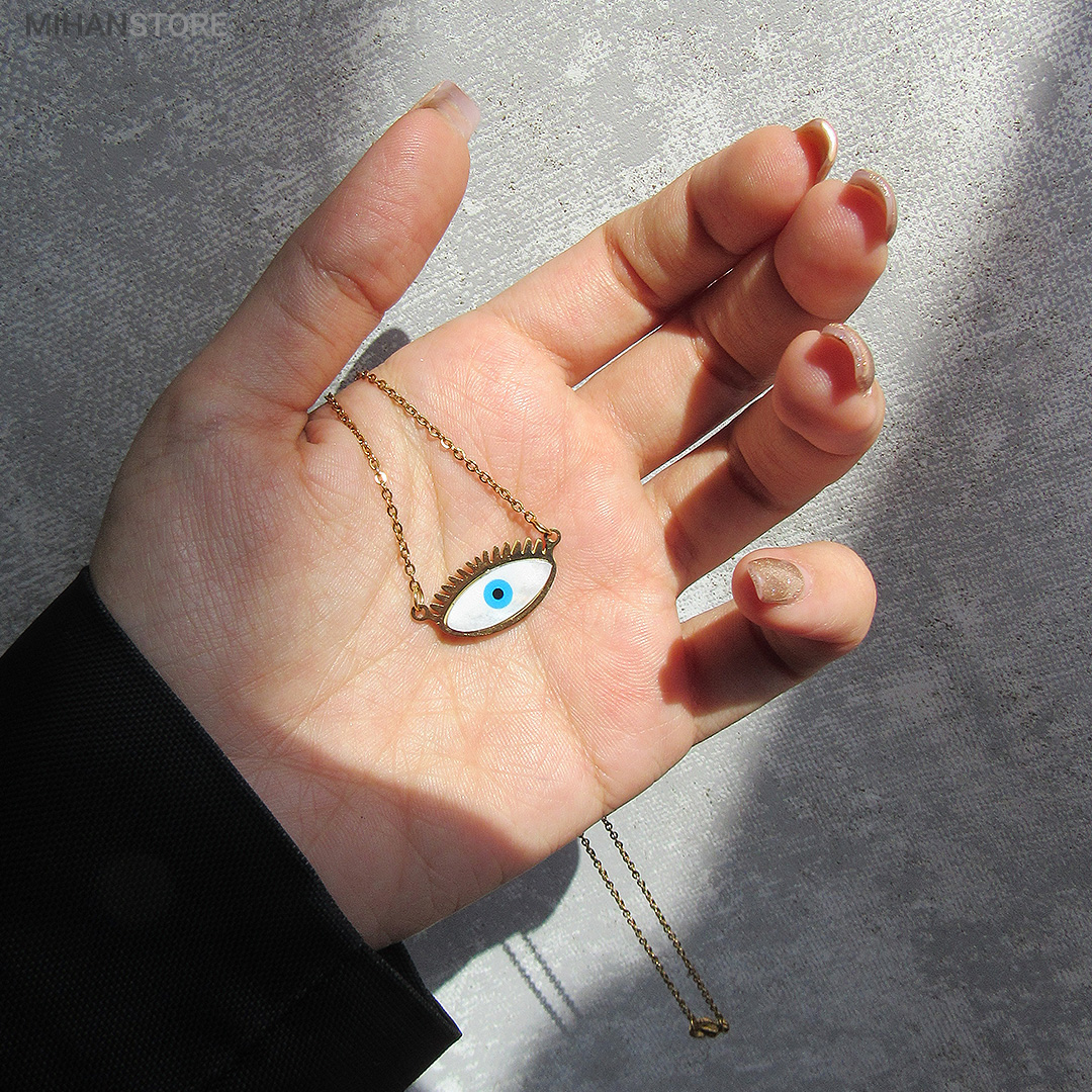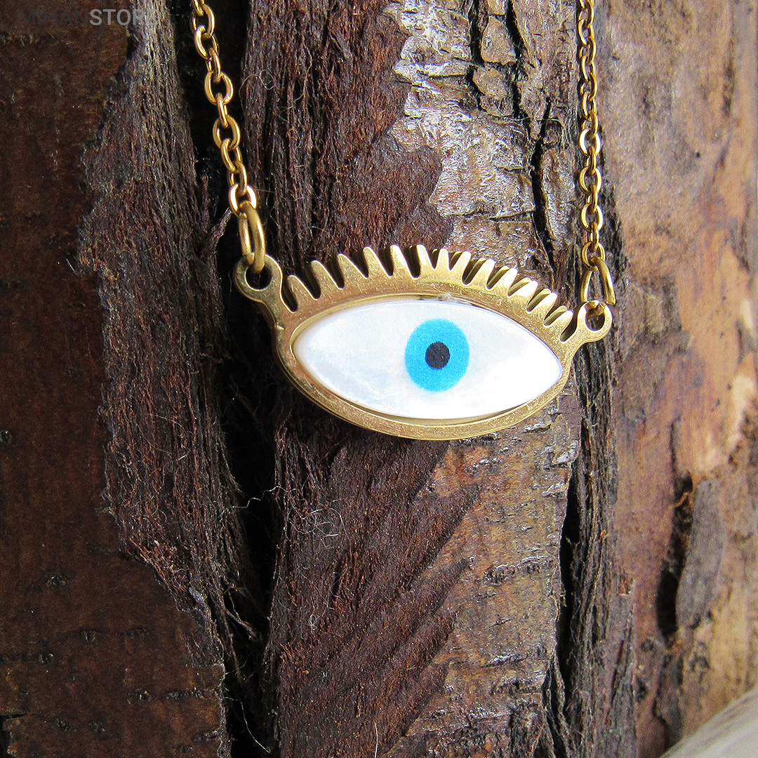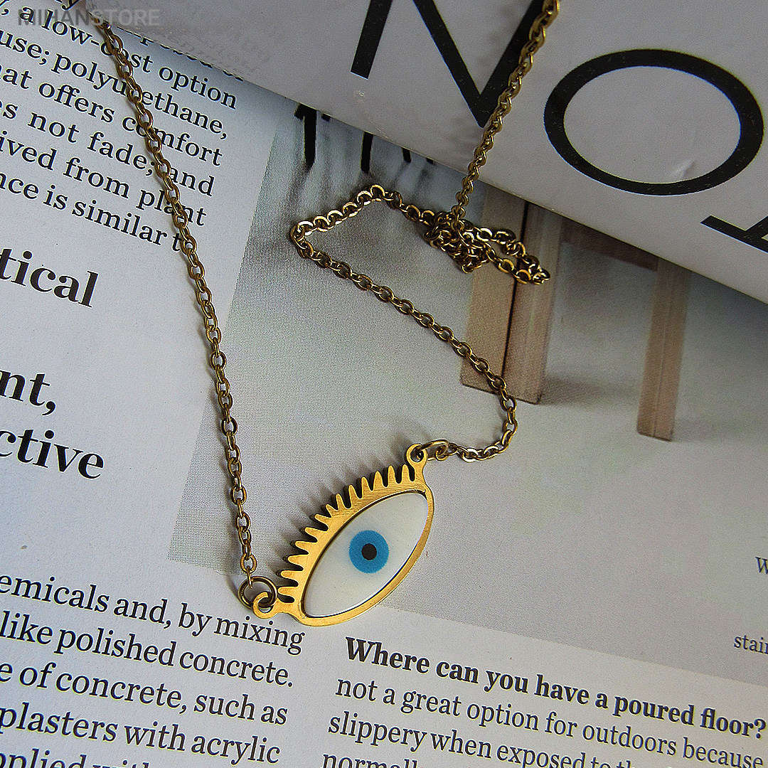 این گردنبند از استیل رنگ ثابت ساخته شده و دارای پلاک چشم نظر خاص و زیبا می باشد که به شکل چشم و مژه به زنجیر متصل می باشد. استفاده از گردنبند برای دوری از چشم زخم، سحر و آسیب به مال و جان توصیه شده است. حس آرامش خوبی را به شما منتقل کرده و مناسب استفاده کودک تا بزرگسال است. گردنبند طرح چشم نظر که از جنس استیل طلایی رنگ ثابت و ضد حساسیت می باشد، هیچ گونه حساسیتی برای پوست ایجاد نمی کند و با خیال آسوده می توانید از این گردنبند استفاده نمایید. این گردنبند یک زنجیر از مدل دیپلمات ساده طلایی با طول 42 سانتیمتر دارد که با قفل مدل قلاب محکم بسته می شود.این زیور به دلیل ابعاد ظریف و طراحی ساده و زیبایی که دارد براحتی مورد قبول سلیقه های خاص قرار میگیرد. همچنین زیبایی و خاص بودن این محصول یک هدیه ی مناسب و جالب برای هر مناسبتی می تواند باشد.