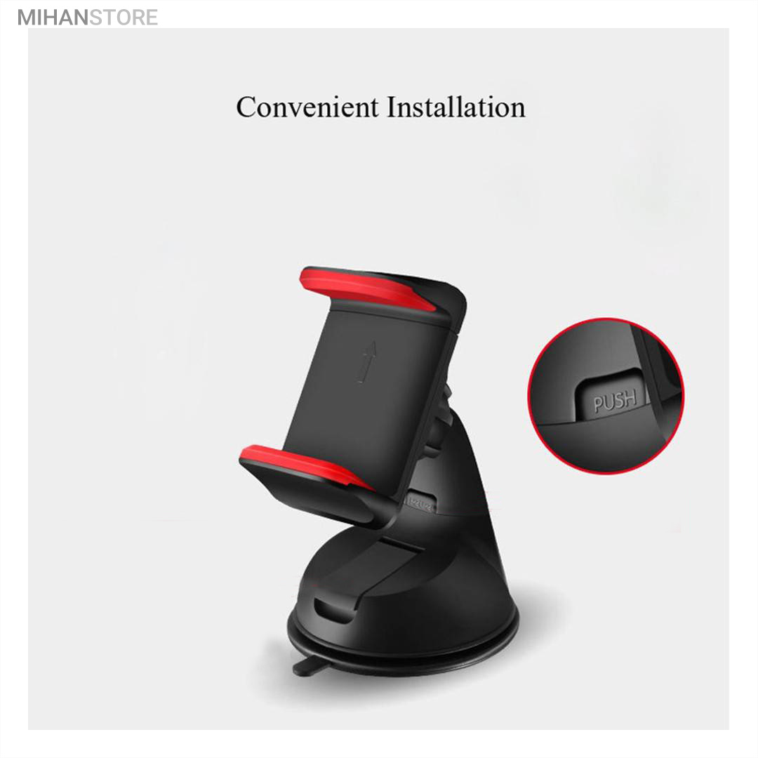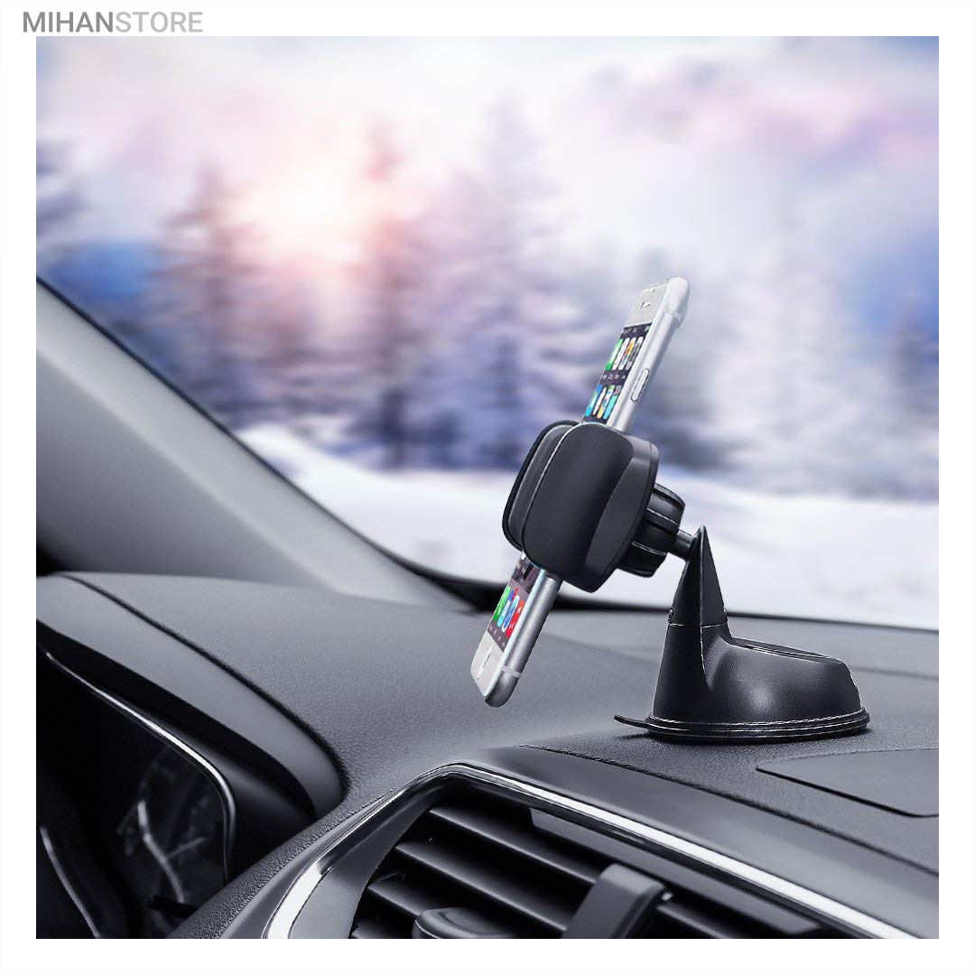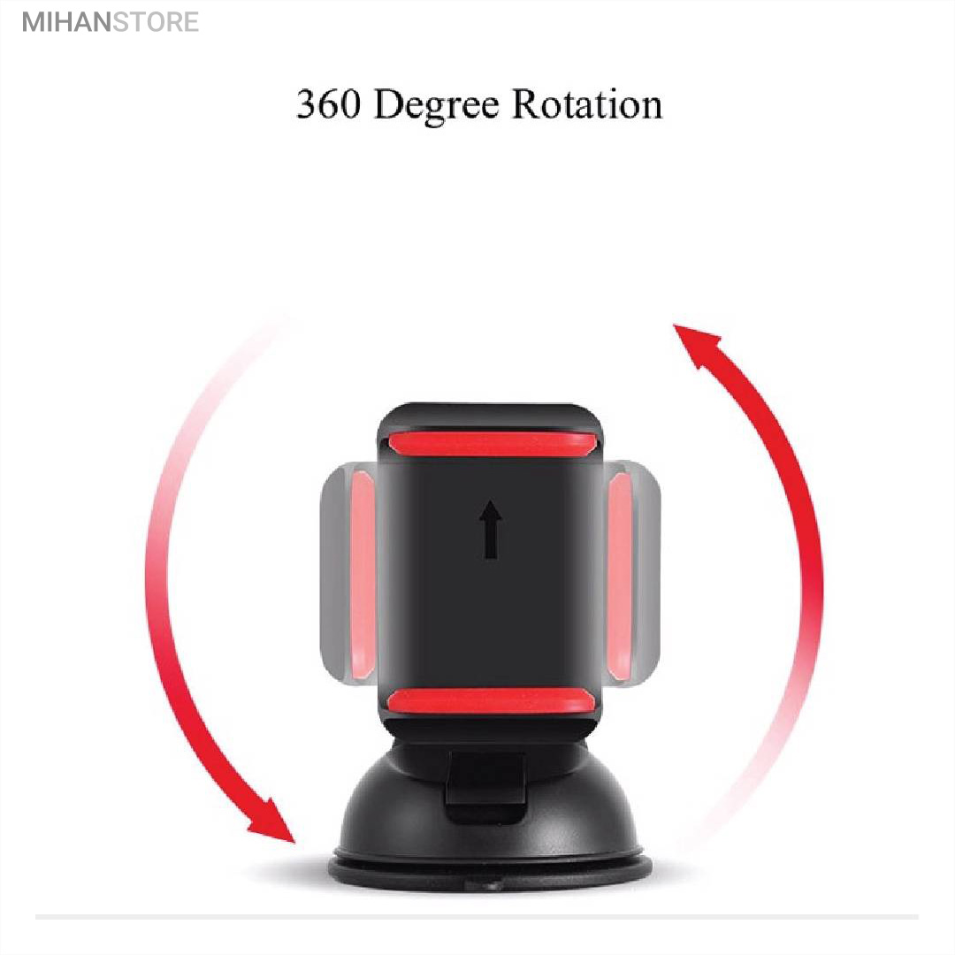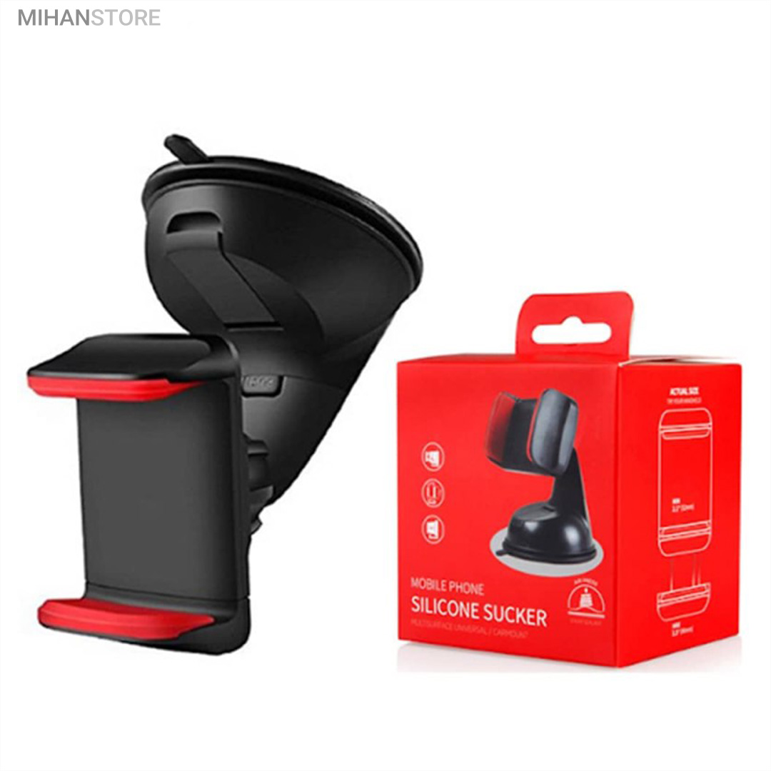 پایه نگهدارنده گوشی موبایل با بادکش های لاستیکی بسیار قوی قابلیت چسبندگی برروی هر سطحی از جمله داشبورد خودرو، شیشه جلویی اتومبیل، میز کار و غیره را خواهد داشت. جنس بدنه این هولدر از پلاستیک بوده و در قسمت گیره‌ای از پوشش سیلیکون برای جلوگیری از لیز خوردن گوشی موبایل استفاده شده است. با استفاده از هولدر موبایل ذکر شده امکان چرخش 360 درجه و یا قرار گرفتن در حالت عمودی و افقی امکان پذیر می‌باشد، که در هنگام رانندگی آسودگی خاطر بالایی برای راننده فراهم می‌آورد. این پایه نگهدارنده گوشی موبایل برای گوشی های هوشمند با سایز حداکثر 6 اینج مناسب می‌باشد. پایه سیلیکونی که به کمک بادکشی بودن به سطوح وصل میشود جوری که طراحی شده که شما میتوانید بارها پایه را جدا کنید و جابجا کنید و مثل روز اول با همان مقاومت به سطح وصل شود و اگر در مجاورت گردو خاک چسبندگی سیلیکون کم شد فقط کافیست پایه را بشورید و استفاده کنید.