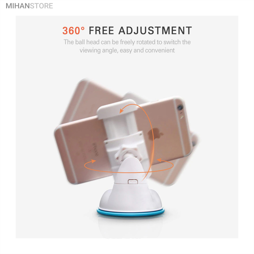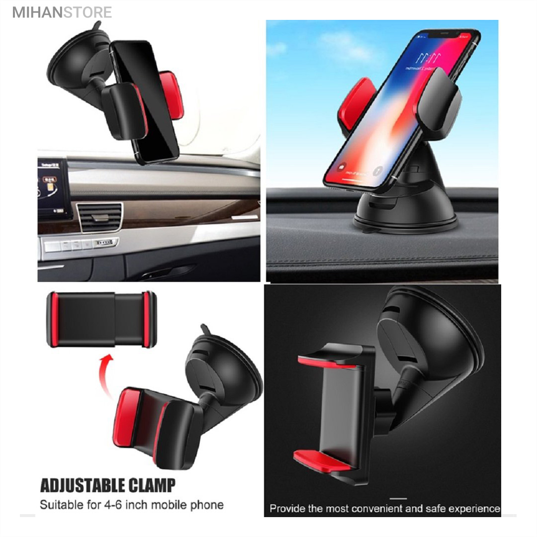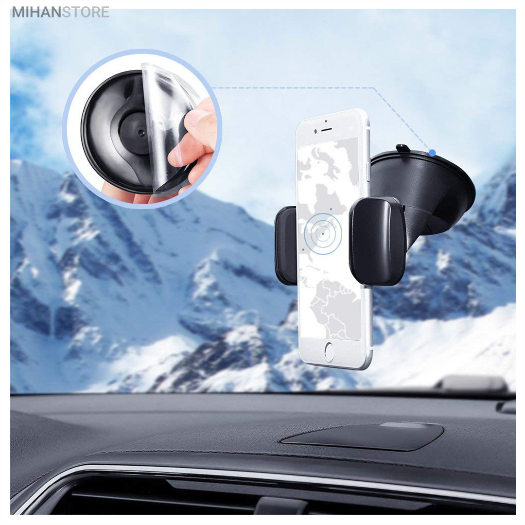 پایه نگهدارنده گوشی موبایل با بادکش های لاستیکی بسیار قوی قابلیت چسبندگی برروی هر سطحی از جمله داشبورد خودرو، شیشه جلویی اتومبیل، میز کار و غیره را خواهد داشت. جنس بدنه این هولدر از پلاستیک بوده و در قسمت گیره‌ای از پوشش سیلیکون برای جلوگیری از لیز خوردن گوشی موبایل استفاده شده است. با استفاده از هولدر موبایل ذکر شده امکان چرخش 360 درجه و یا قرار گرفتن در حالت عمودی و افقی امکان پذیر می‌باشد، که در هنگام رانندگی آسودگی خاطر بالایی برای راننده فراهم می‌آورد. این پایه نگهدارنده گوشی موبایل برای گوشی های هوشمند با سایز حداکثر 6 اینج مناسب می‌باشد. پایه سیلیکونی که به کمک بادکشی بودن به سطوح وصل میشود جوری که طراحی شده که شما میتوانید بارها پایه را جدا کنید و جابجا کنید و مثل روز اول با همان مقاومت به سطح وصل شود و اگر در مجاورت گردو خاک چسبندگی سیلیکون کم شد فقط کافیست پایه را بشورید و استفاده کنید.