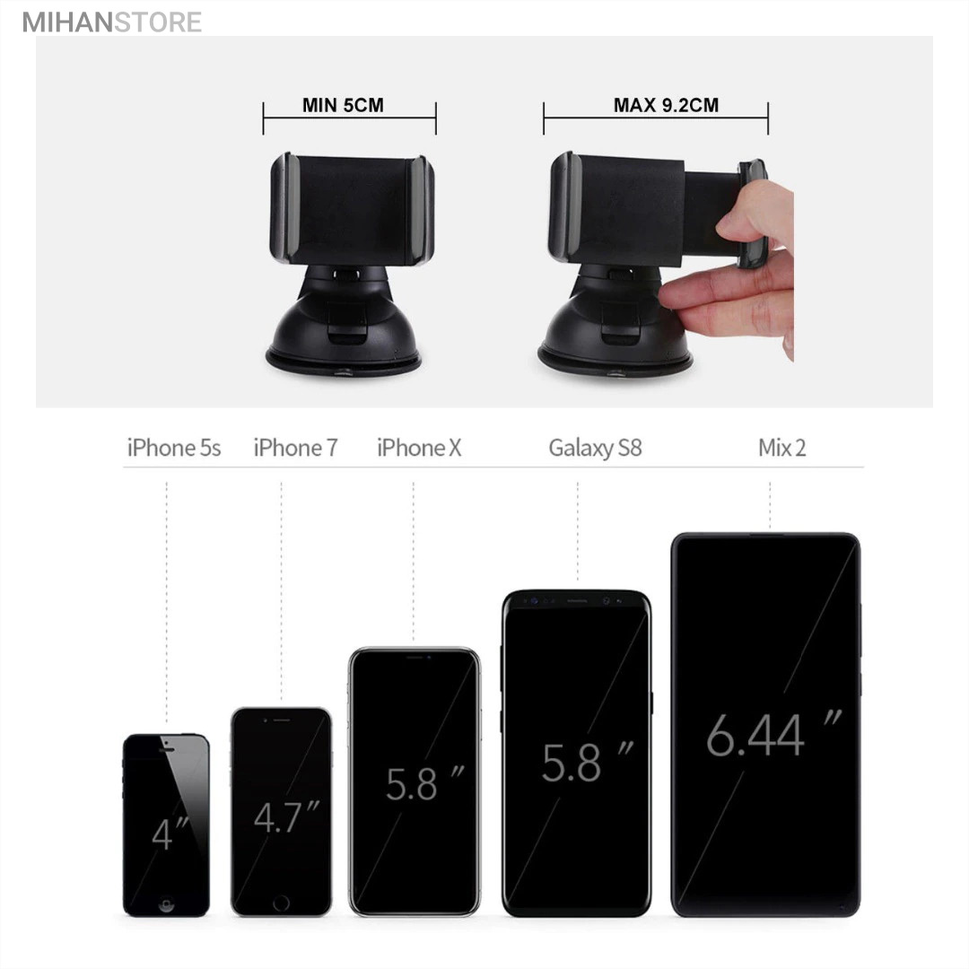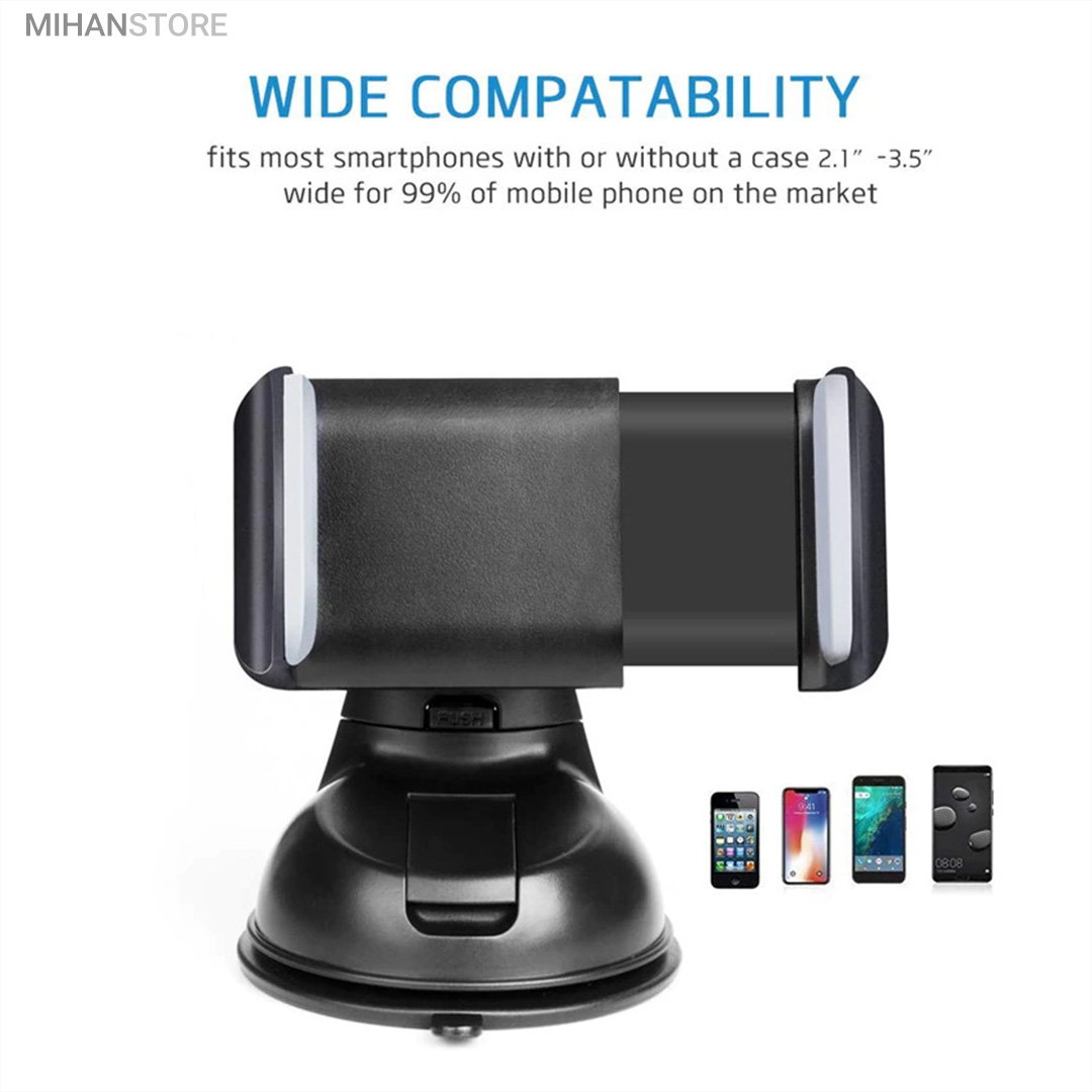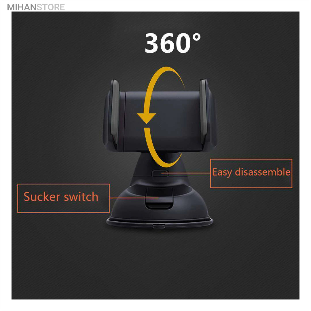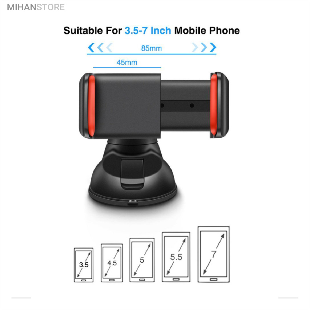 پایه نگهدارنده گوشی موبایل با بادکش های لاستیکی بسیار قوی قابلیت چسبندگی برروی هر سطحی از جمله داشبورد خودرو، شیشه جلویی اتومبیل، میز کار و غیره را خواهد داشت. جنس بدنه این هولدر از پلاستیک بوده و در قسمت گیره‌ای از پوشش سیلیکون برای جلوگیری از لیز خوردن گوشی موبایل استفاده شده است. با استفاده از هولدر موبایل ذکر شده امکان چرخش 360 درجه و یا قرار گرفتن در حالت عمودی و افقی امکان پذیر می‌باشد، که در هنگام رانندگی آسودگی خاطر بالایی برای راننده فراهم می‌آورد. این پایه نگهدارنده گوشی موبایل برای گوشی های هوشمند با سایز حداکثر 6 اینج مناسب می‌باشد. پایه سیلیکونی که به کمک بادکشی بودن به سطوح وصل میشود جوری که طراحی شده که شما میتوانید بارها پایه را جدا کنید و جابجا کنید و مثل روز اول با همان مقاومت به سطح وصل شود و اگر در مجاورت گردو خاک چسبندگی سیلیکون کم شد فقط کافیست پایه را بشورید و استفاده کنید.