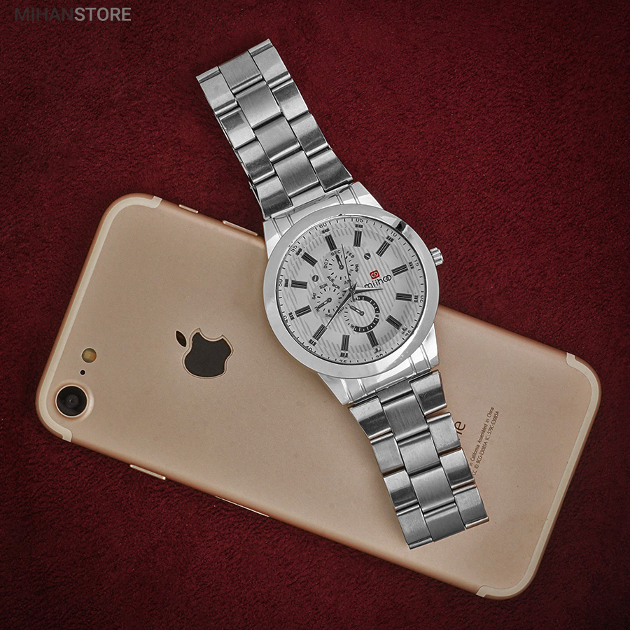 ساعت مچی مردانه MIHOO TIGER یک ساعت شیک فلزی با بند بافت فلزی با رنگ نقره ای در رده ساعت کلاسیک اسپرت می باشد و تکمیل کننده استایل خاص شما خواهد بود. این ساعت طرح 3 موتوره می باشد و بسیار خوش ساخت و با کیفیت تولید شده است، این محصول همراه با یک جعبه شکیل ارسال خواهد شد.