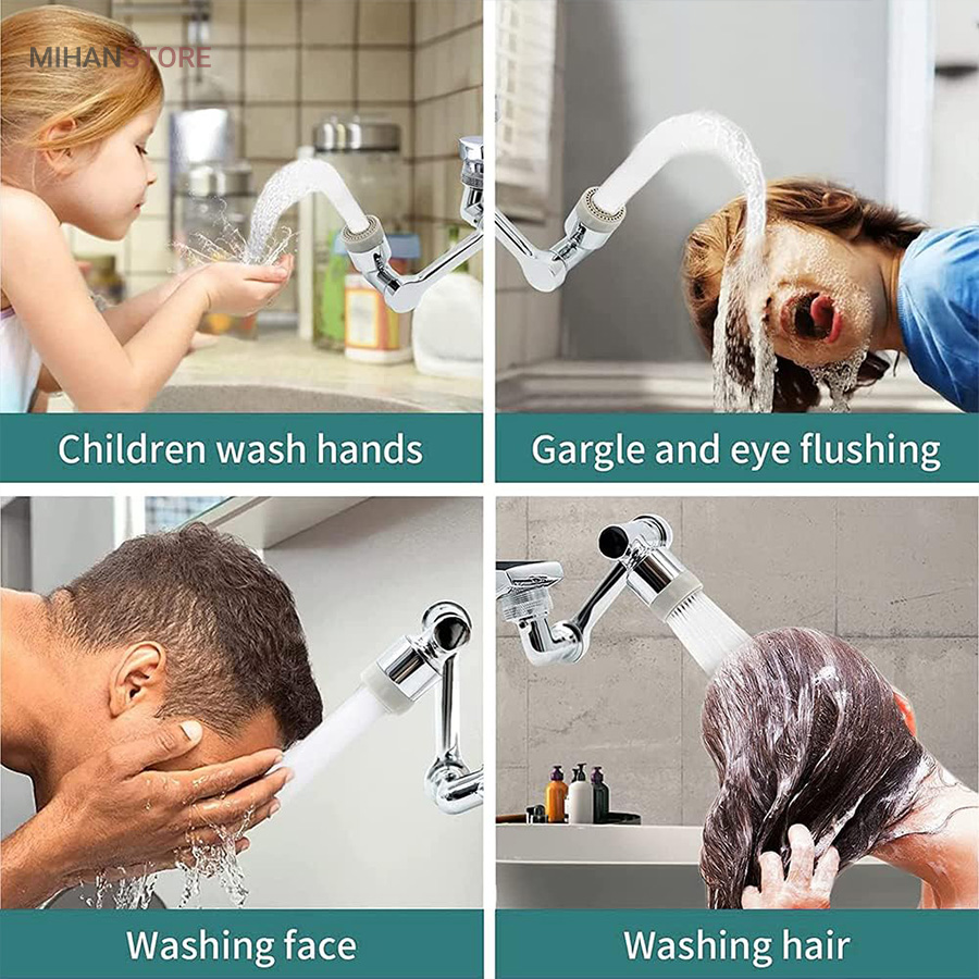محصولی جدید با طراحی منحصر به فرد که می تواند به آسانی بهره برداری از یک شیر آب معمولی را برای شما به حداکثر برساند . این سرشیر دارای 3 قسمت مشتمل بر سری اتصال به شیر آب ، سری خروجی و بازوی میانی می باشد که هر کدام قابلیت چرخش 360 درجه به صورت تکی و در مجموع ، حرکت در زاویه 1080 درجه را دارند ، بنابراین به ساده ترین شکل ممکن می توانید زاویه خروجی آب را انتخاب و تنظیم نمایید ، این یعنی کمترین محدودیت ممکن برای استفاده از آب و در نهایت صرفه جویی در مصرف . سری اتصال به شیر دارای قطر اصلی 2.2 سانتی متر می باشد که امکان اتصال به بسیاری از شیرهای آب را دارد ، اما در غیر این صورت می توانید از یک مبدل متناسب با نوع شیر آب برای اتصال استفاده کنید . خروجی سر شیر آب چرخشی ، پوششی از جنس ABS مقاوم دارد که مجهز به دو نوع پاشش خروجی آب است ، بنابراین می توانید تنها با مقداری چرخش سری ، پاشش آب را تغییر دهید . وجود بازوی میانی سر شیر 3 محور (1080 درجه) علاوه بر کمک به حرکت در جهات مختلف امکان مقداری فاصله گرفتن خروجی سرشیر تلسکوپی از شیر آب اصلی را فراهم نموده ، به طوری که شما این قابلیت را خواهید داشت تا کمی خروجی را بالاتر و یا پایین تر از حالت عادی تنظیم نمایید . از سر شیر آب چرخان برای شیرهای مختلف (متناسب با ابعاد) روشویی ، سینک و ... می توانید استفاده کنید.