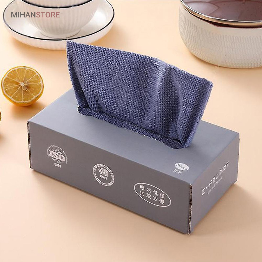 دستمال حوله ای آشپزخانه میکروفایبر 20 عددی مناسب شستشو و آبگیری ظروف و سطوح داخل آشپزخانه  با قدرت جذب بسیار بالا، بدون پرزدهی و شستشوی راحت و همچنین قابل استفاده برای تمیز کردن صفحه موبایل، مانیتور، تلویزیون و خودروی شما، بدون ایجاد خش هیچ لکه ای را به جا نمی گذارد.این دستمال ها در رنگبندی های متنوع در یک پک کاملا بهداشتی و زیبا موجود می باشد. که به عنوان دستمال سفره و دستمال کودک نیز قابل استفاده است.همچنین این محصول با فناوری میکروفایبر تولید شده است که قابلیت جذب سریع آب و خاصیت الکترواستاتیک (ضد پرزدهی) و همچنین نرمی الیاف برای صفحه نمایش ها را دارا می باشد.سایز دستمال حوله ای میکروفایبر 20 سانتی متر در 20 سانتی متر می باشد. محصولات نظافتی و شستشو جزیی از ابزار جدانشدنی یک خانه مرتب و عالی است.پارچه تمیز کننده جادویی فوق العاده نرم رنگ، شیشه یا هر سطحی را خراش نمی دهد. با جذب فوق العاده، مقاوم در برابر محو شدن، قابل شستشو، قابلیت تمیز کنندگی قوی و تمیز کردن آسان.دستمال‌ها از مواد میکروفیبر دو طرفه ضخیم با چگالی بالا با پرز کم و انقباض کم ساخته شده‌اند، به خوبی ساخته شده‌اند، بادوام هستند و می‌توانند بارها مورد استفاده مجدد قرار گیرند.به سادگی حوله ظرف را برای چند لحظه بدون افزودن مواد شوینده در آب خیس کنید، سپس دستمال تمیز کننده را فشار داده و شروع به تمیز کردن کنید.پارچه نظافتی آشپزخانه چند منظوره است، به آشپزخانه محدود نمی شود، می توانید از آن برای تمیز کردن کابینت حمام، آینه، دیوار، توالت و غیره استفاده کنید. البته می توان از آن برای تمیز کردن پنجره، شیشه، میز استفاده کرد.