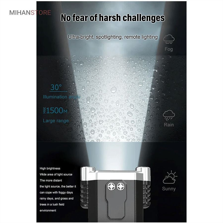 این چراغ قوه شارژی که جنس بدنه از آلیاژ است و دربرابر ضربه بسیار مقاوم است. دارای  سیستم ضد آب است و ایمن برای استفاده حتی در زیر باران میباشد. کابل های مهر و موم شده با کیفیت بالا  به گونه ای که می تواند حتی در هنگام باران نیز به کار خود ادامه دهد. شارژ چراغ قوه از طریق کابل USB به سادگی با اتصال به پاور بانک و برق شهری و ... میباشد.نور چراغ نور سفید 800/3800 است.محدوده نور حدود 300 متر است.نور بصورت 4 حالت روشنایی نور قوی بالا/نور کم/نور بارق/نور جانبی COBاست و با باتری: 18650 باتری آلومینیومی شارژی که داخل آن تعبیه شده است کار میکند . این چراغ قوه شما را از هرنوع چراغ اضطراری دیگر بی نیاز می سازد.