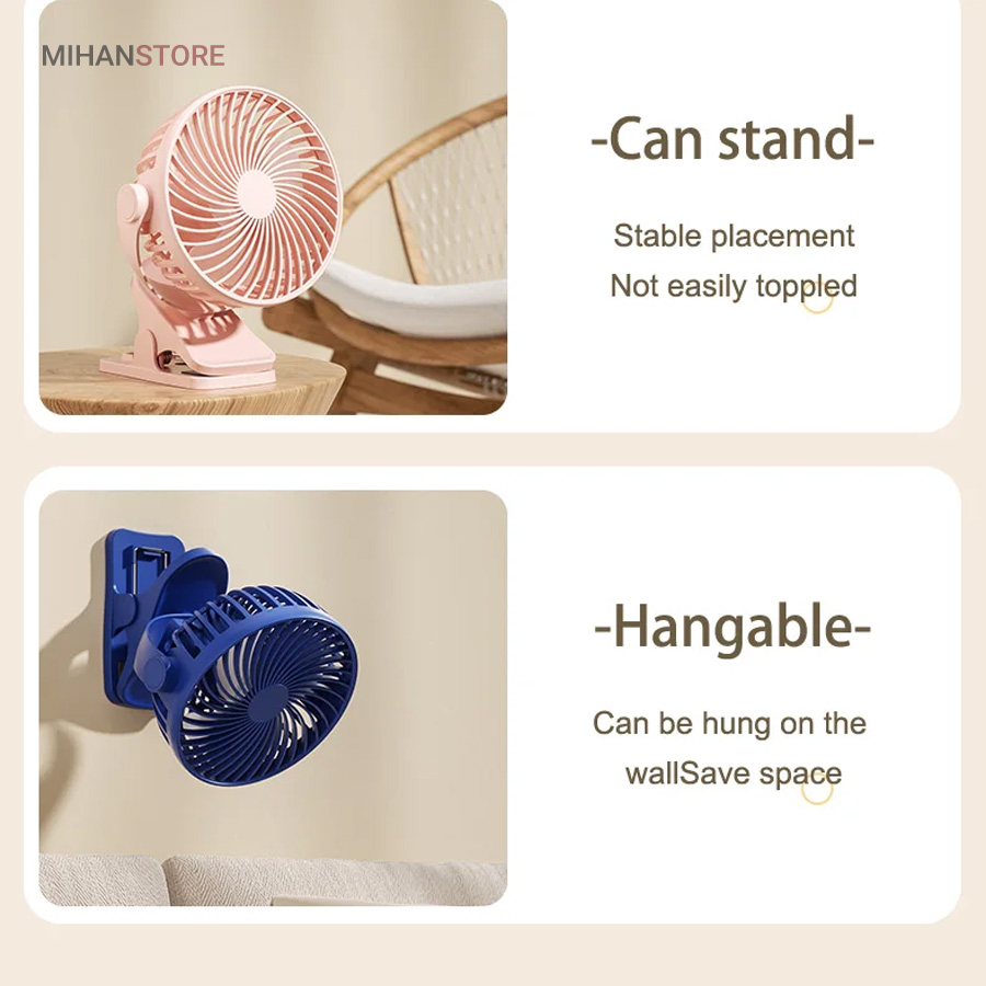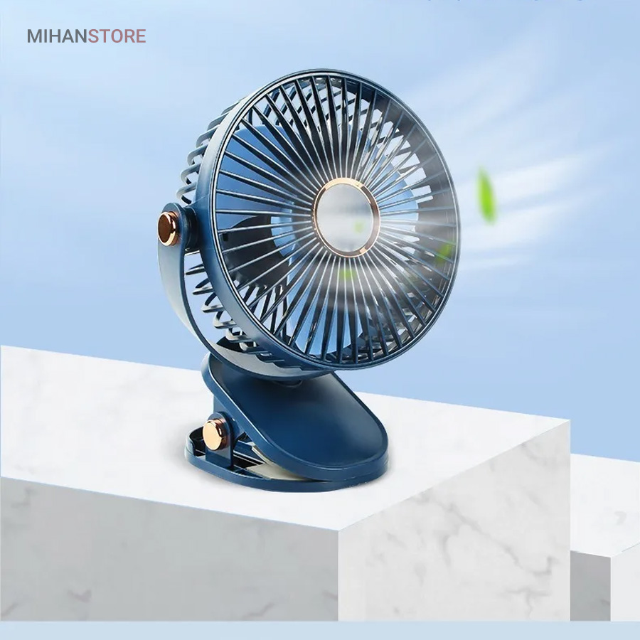 این پنکه می تواند گزینه مناسبی برای زمانی باشد که شما به برق دسترسی ندارید و یا برق رفته است. باطری این پنکه شارژ می شود و می توانید از آن بدون نیاز به اتصال مداوم به برق استفاده کنید. قدرت پرتاب هوا توسط پره های این پنکه با توجه به ساخت متفاوت بسیار بالا است و گردش هوای مناسب و قوی تری ایجاد می کند.این پنکه قدرت انتخاب سه سرعت را به فرد می دهد که با توجه به شرایط فرد انتخاب می کند کدام سرعت را تنظیم کرده و استفاده کند.دارای گیره اتصال برای متصل نمودن به میز یا دستگیره و یا دسته صندلی یا داخل ماشیناین پنکه از سایز خوبی برخوردار است که می توان آن را داخل کیف قرار داده و با خود حمل کنید.یکی دیگر از ویژگی های این پنکه حالت چرخش 360 درجه آن است که با توجه به نیازتان می توانید جهت آن را تنظیم کنید. این پنکه دارای LED در داخل پنکه می باشد که هنگام کار کردن زیبایی خاصی به محصول می بخشد.