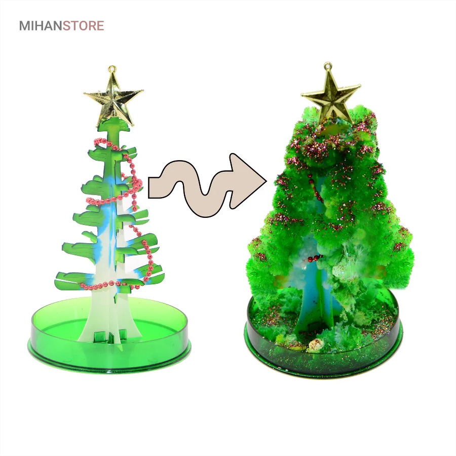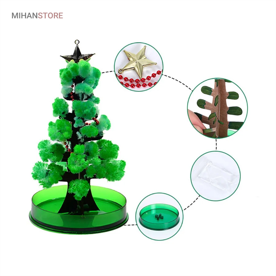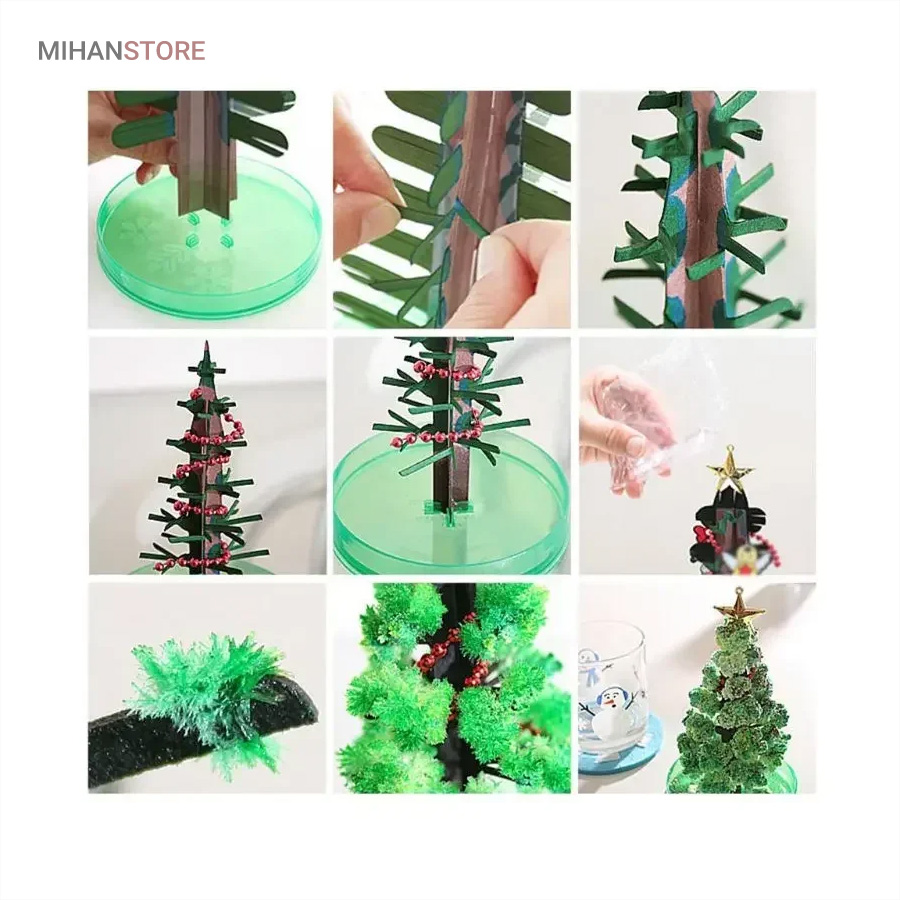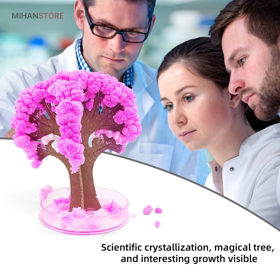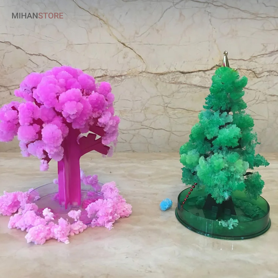 این محصول از طریق رشد کریستال های سوزنی یک درخت ساکورا (شکوفه های گیلاس) و یا درخت کاج کریسمس زیبا را به شما ارائه میدهد. . بـا اسـتـفـاده از این محصول و انجام درست مراحل تکمیل آن،میتوانید بعد از یک ساعت مشاهده کنیدکه یک درخت کاج کریسمس یا درخت ساکورا شروع به شکوفه زدن میکند و در نهایت بعد از گذشت 10 الی 24 ساعت که این زمان به دمای محیط بستگی داره در جای مرطوب زمان طولانی تر خواهد بود  به یک درخت ساکورا (شکوفه های گیلاس) و یا درخت کاج کریسمس کامل تبدیل میشود.
