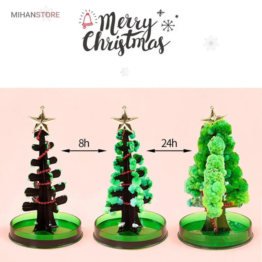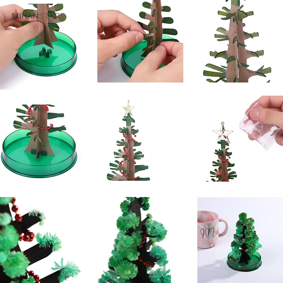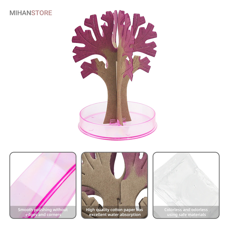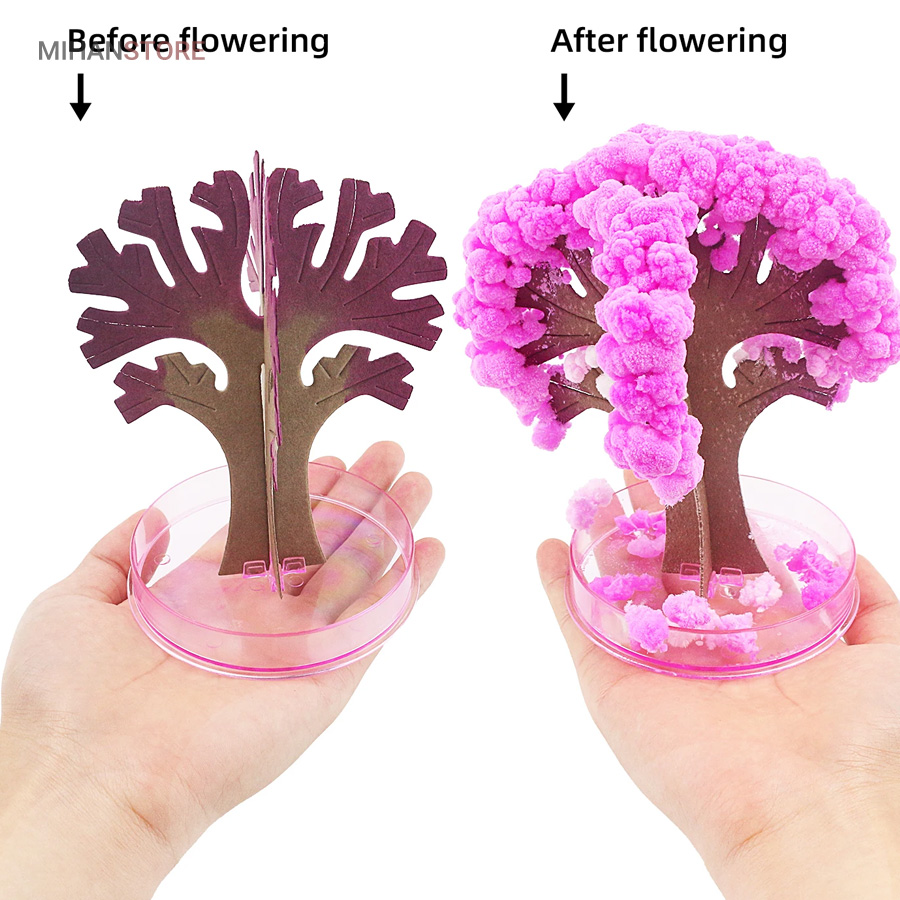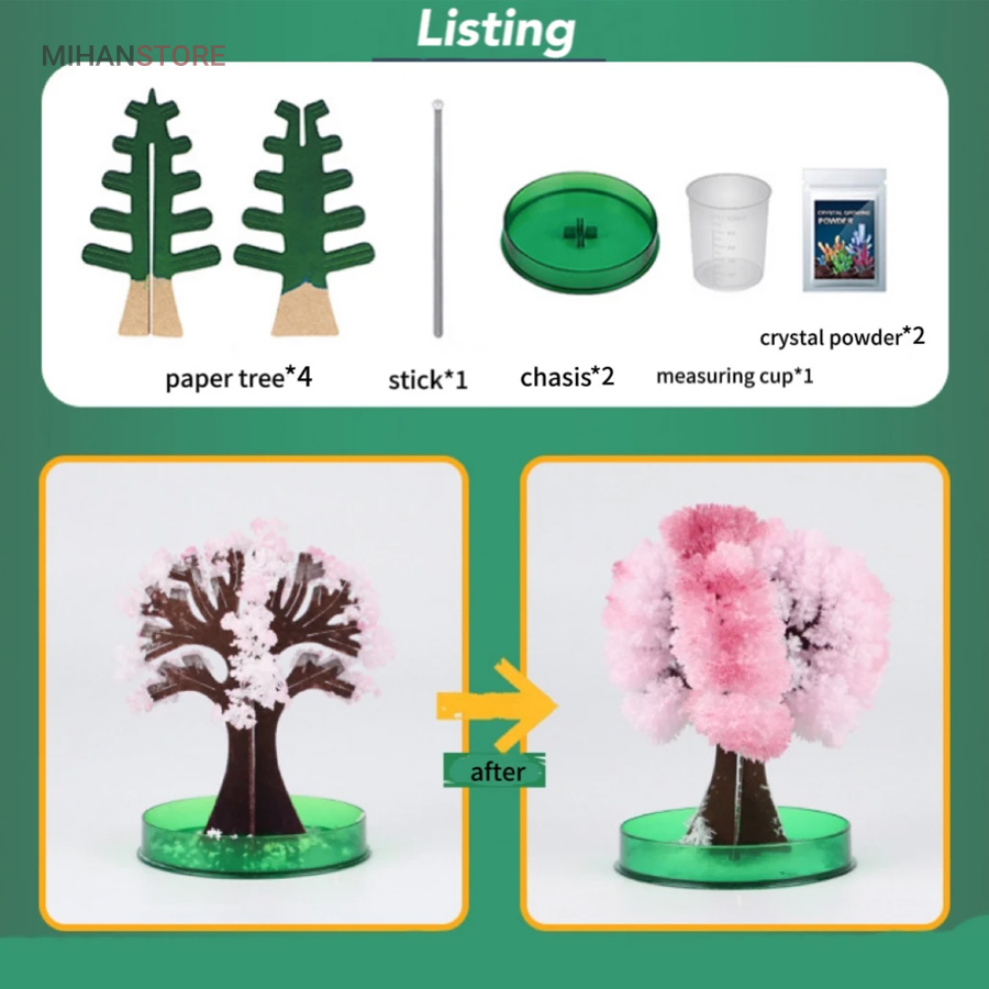 این محصول از طریق رشد کریستال های سوزنی یک درخت ساکورا (شکوفه های گیلاس) و یا درخت کاج کریسمس زیبا را به شما ارائه میدهد. . بـا اسـتـفـاده از این محصول و انجام درست مراحل تکمیل آن،میتوانید بعد از یک ساعت مشاهده کنیدکه یک درخت کاج کریسمس یا درخت ساکورا شروع به شکوفه زدن میکند و در نهایت بعد از گذشت 10 الی 24 ساعت که این زمان به دمای محیط بستگی داره در جای مرطوب زمان طولانی تر خواهد بود  به یک درخت ساکورا (شکوفه های گیلاس) و یا درخت کاج کریسمس کامل تبدیل میشود.