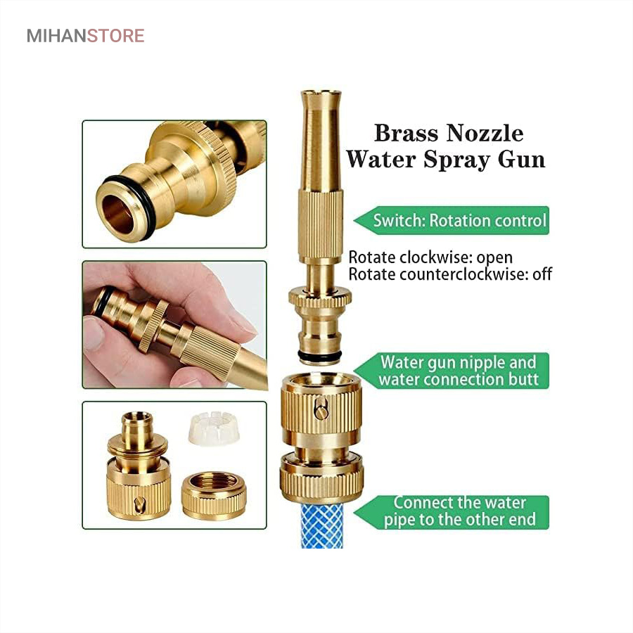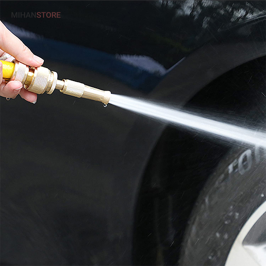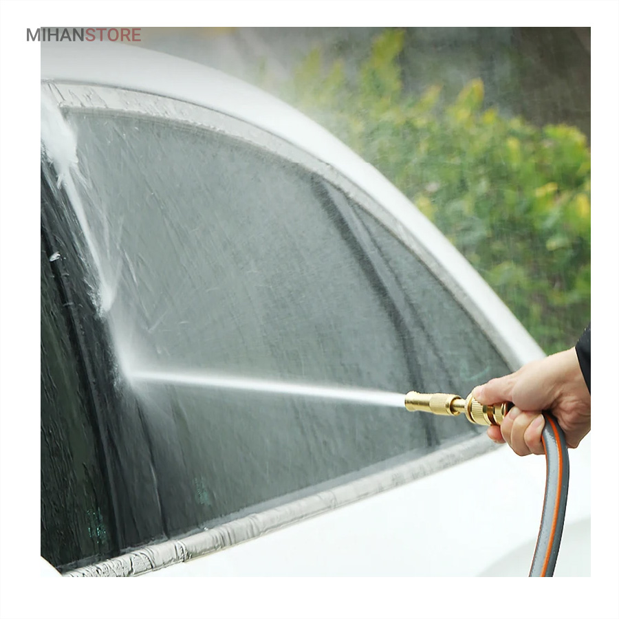 کارواش سر شلنگی برنجی یک گجت کاربردیست که با اتصال به سر شلنگ تبدیل به یک کارواش شلنگی پرقدرت شده که می تواند فشار آب را تا حدودی تقویت کند تا به سادگی بتوانید مانند یک کارواش از آن استفاده کنید و نگران فشار پایین آب نباشید.اگر از دسته افراد علاقه مند به باغبانی، گل و گیاه کاری، کشاورزی، شستن ماشین و… هستید، دیگر نگران نباشید، با این محصول، بسیاری از مشکلات افرادی که در این شغل ها هستند را برطرف می کند.این سر شلنگ از جنس برنج ساخته شده است که در برابر آب و هوا مقاوم است و اصلا زنگ نمی زند. همچنین دیگر نیاز نیست به دنبال کارواش های گران قیمت باشید، این سر شلنگ مشکل شما را حل خواهد کرد. کافی است سر شلنگ را به شلنگ معمولی متصل کرده و یک کارواش خانگی داشته باشید. از دیگر ویژگی های این محصول قابلیت تنظیم شدن آن است، یک نازل دارد که آب را از مدل سوزنی تا پخش شونده به صورت کامل تنظیم می کند.این سر شلنگ طوری طراحی شده که می توان برای شستشو خانگی ماشین، کف حیاط، آبیاری گل و گیاه و باغچه از آن استفاده کرد. این آب پاش طوری ساخته شده که به گل و گیاه آسیب وارد نمی کند.اگر حیوان خانگی دارید، می توانید این آب پاش را تنظیم کرده و حیوان خانگی خود را به  راحتی بشویید.