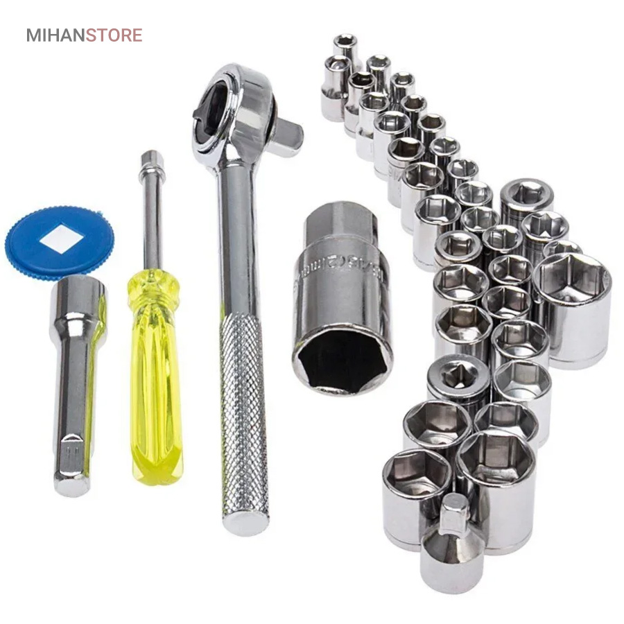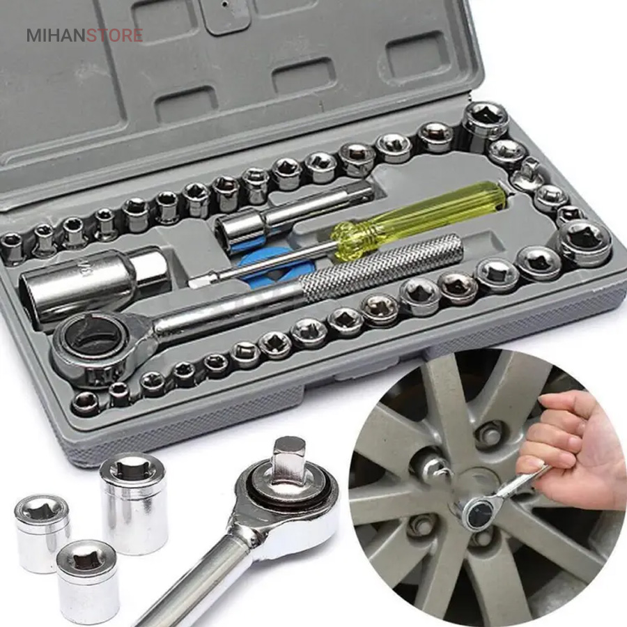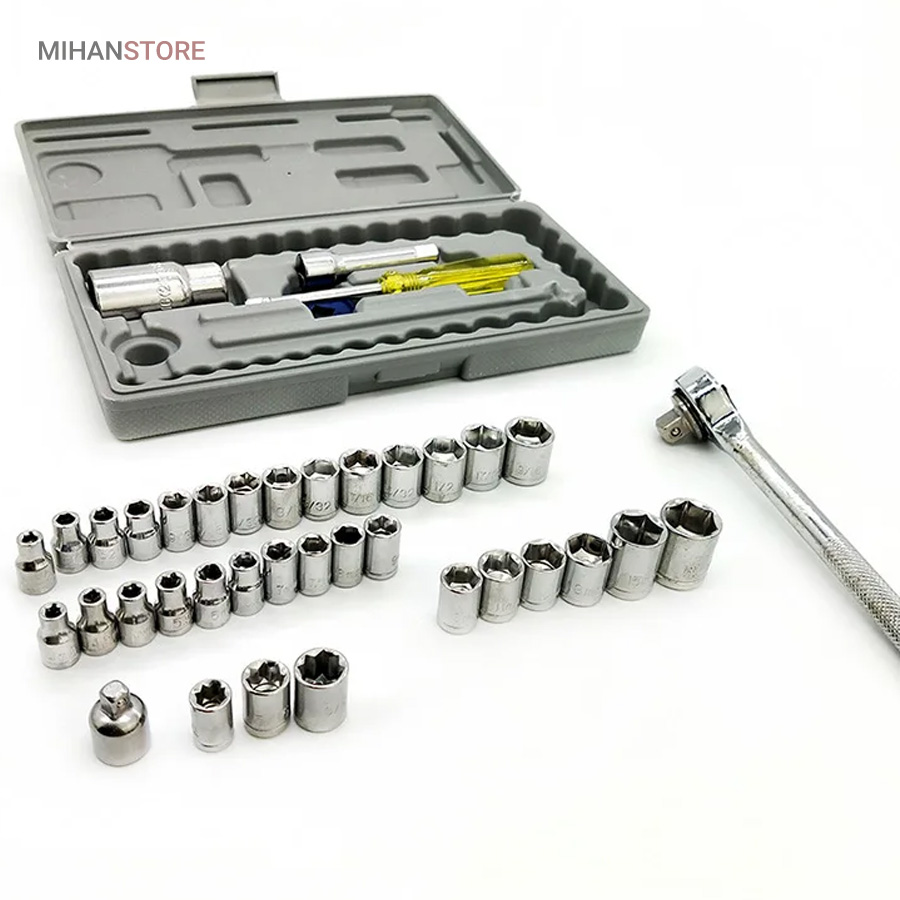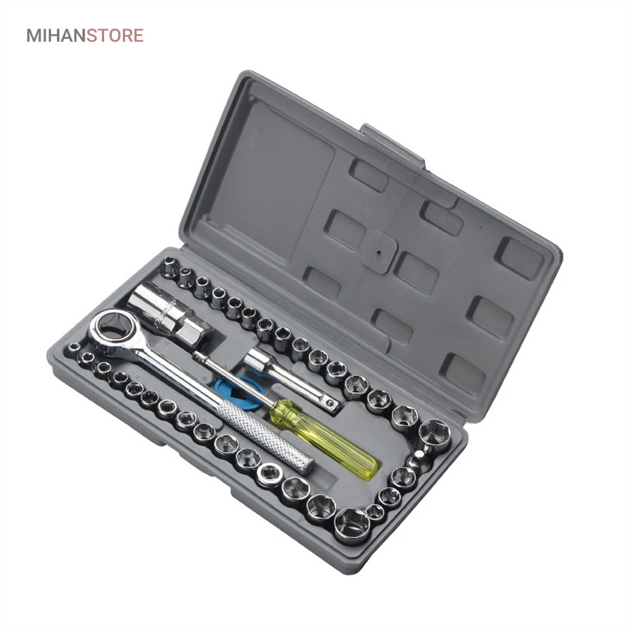 - دارای دسته استاندارد و 40 عدد سری آچار بکس