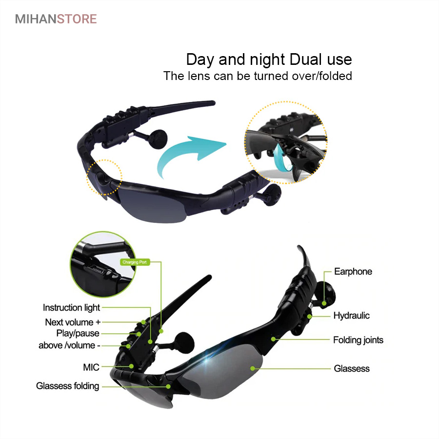 ویژگی های عینک آفتابی و هندزفری بلوتوث FASHION PLONEER :