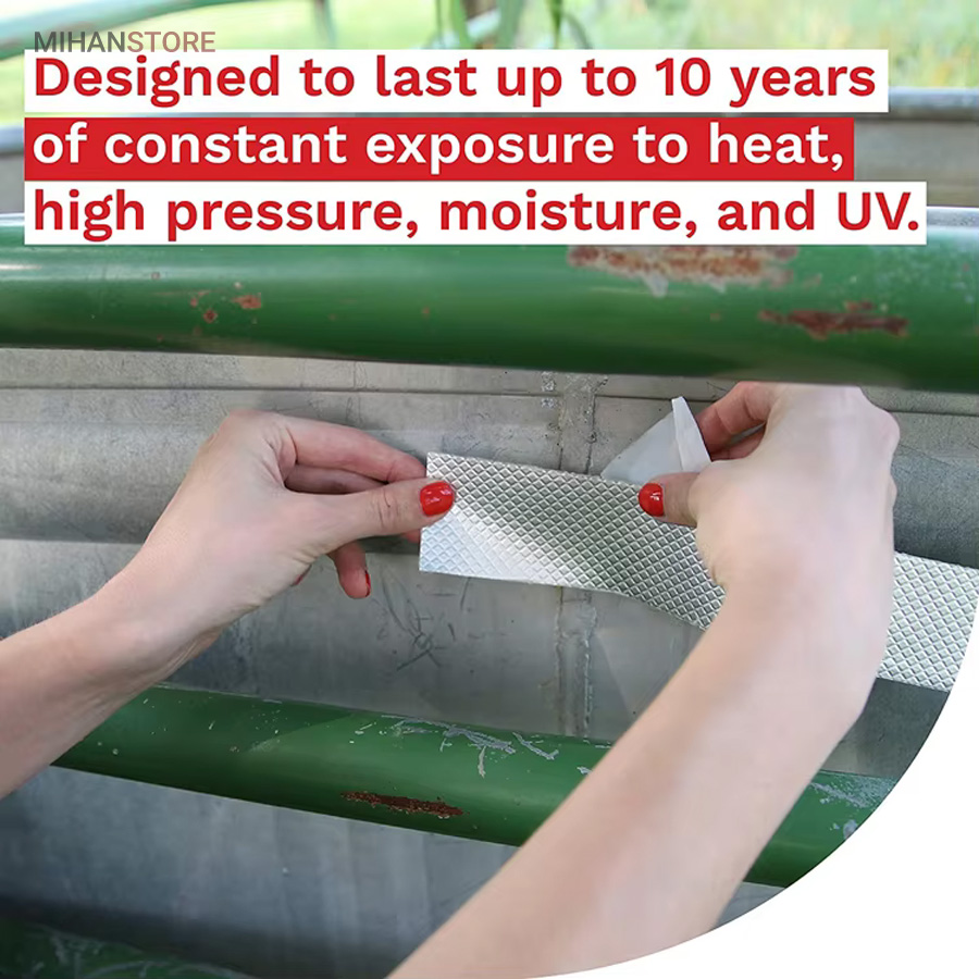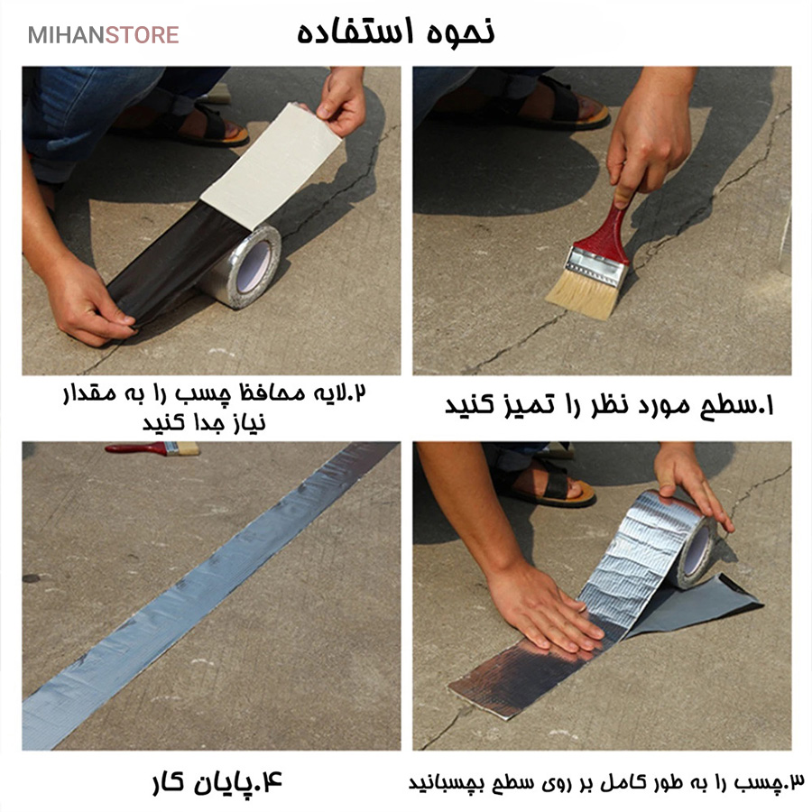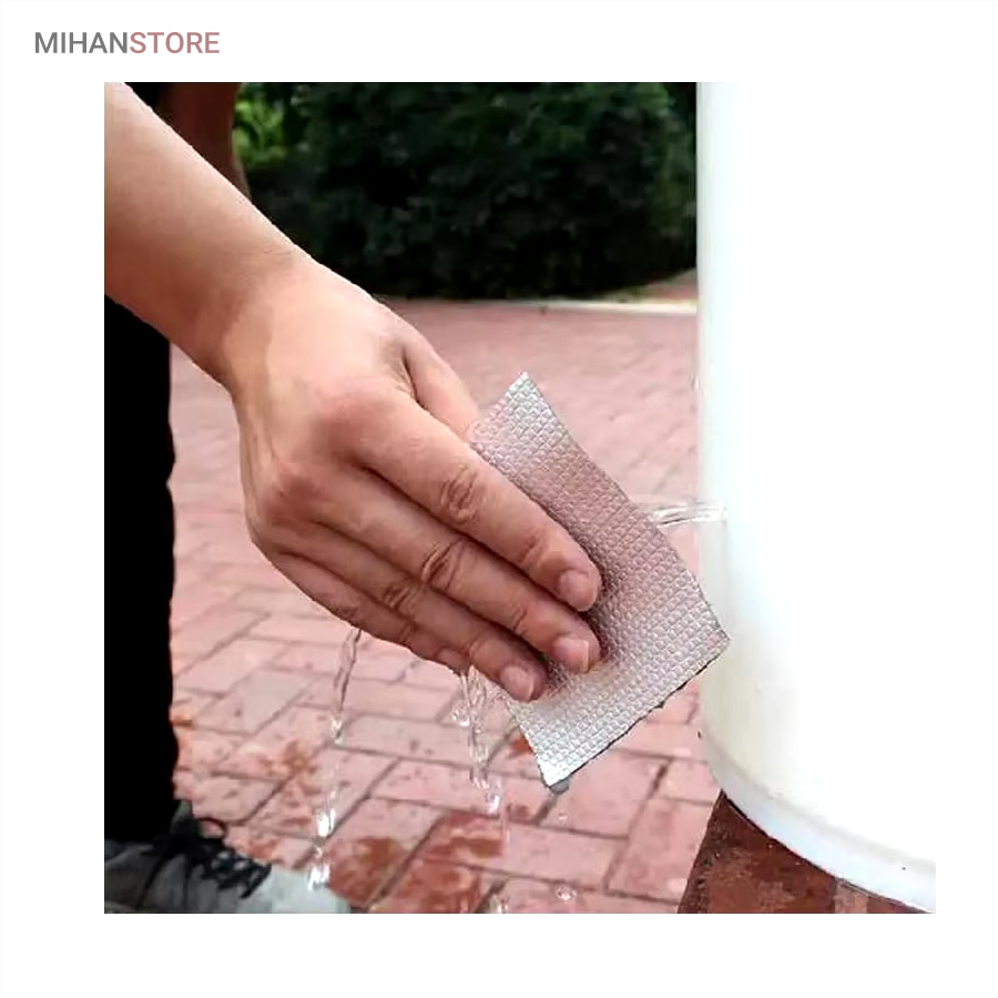 چسب آب بندی نواری نمونه ای جدید از ابزار پوشش محسوب می شود که دارای سطح رویین شبکه ای به رنگ نقره ای می باشد ، خصوصیتی که زیبایی ظاهری را برای آن تا حدی پدید آورده ، به طوری که بتوان از کالا در بیشتر موقعیت های مکانی بدون نگرانی از تخریب شکل ظاهری استفاده نمود . سطح زیرین محصول ، لایه ای چسبی وجود دارد که چسبندگی بسیار خوبی را دارا است ، به طوری که به اغلب سطوح می توان آن را چسباند و استفاده کرد ، البته با دقت به این موضوع که بهترین عملکرد برای کالا روی سطح یکدست (مسطح) ، بدون برجستگی است . پهنای چسب درزگیر ، 5 سانتی متر با طول 5 متر می باشد که می توانید از آن برای پوشش ترک سطوح مختلف استفاده کنید ، کافی است سطح مورد نظر را تمیز کنید و در نهایت برچسب را روی منافذ ، ترک و یا شیار مورد نظر به خوبی بچسبانید به طوری که کامل آن پوشش دهد . برچسب آب بندی ، مقاومت لازم در برابر آب را نیز دارد بنابراین کمترین محدودیت ممکن در استفاده از آن را خواهید داشت .