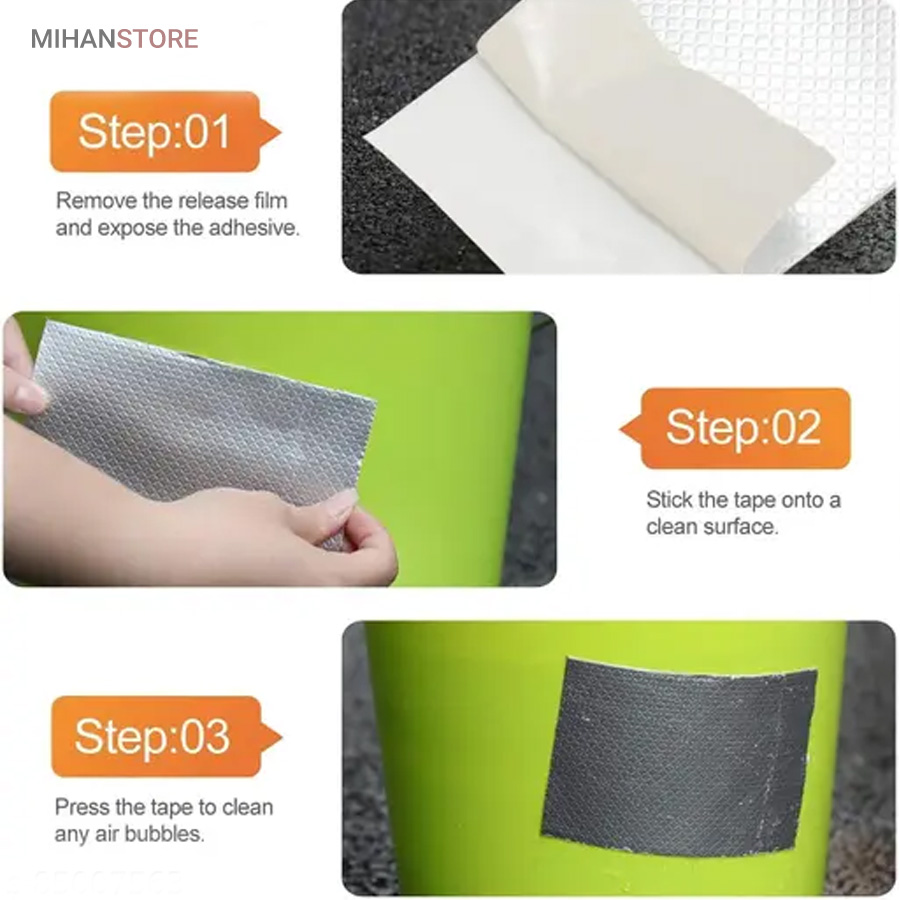 چسب آب بندی نواری نمونه ای جدید از ابزار پوشش محسوب می شود که دارای سطح رویین شبکه ای به رنگ مشکی می باشد ، خصوصیتی که زیبایی ظاهری را برای آن تا حدی پدید آورده ، به طوری که بتوان از کالا در بیشتر موقعیت های مکانی بدون نگرانی از تخریب شکل ظاهری استفاده نمود . سطح زیرین محصول ، لایه ای چسبی وجود دارد که چسبندگی بسیار خوبی را دارا است ، به طوری که به اغلب سطوح می توان آن را چسباند و استفاده کرد ، البته با دقت به این موضوع که بهترین عملکرد برای کالا روی سطح یکدست (مسطح) ، بدون برجستگی است . پهنای چسب درزگیر ، 5 سانتی متر با طول 5 متر می باشد که می توانید از آن برای پوشش ترک سطوح مختلف استفاده کنید ، کافی است سطح مورد نظر را تمیز کنید و در نهایت برچسب را روی منافذ ، ترک و یا شیار مورد نظر به خوبی بچسبانید به طوری که کامل آن پوشش دهد . برچسب آب بندی ، مقاومت لازم در برابر آب را نیز دارد بنابراین کمترین محدودیت ممکن در استفاده از آن را خواهید داشت .