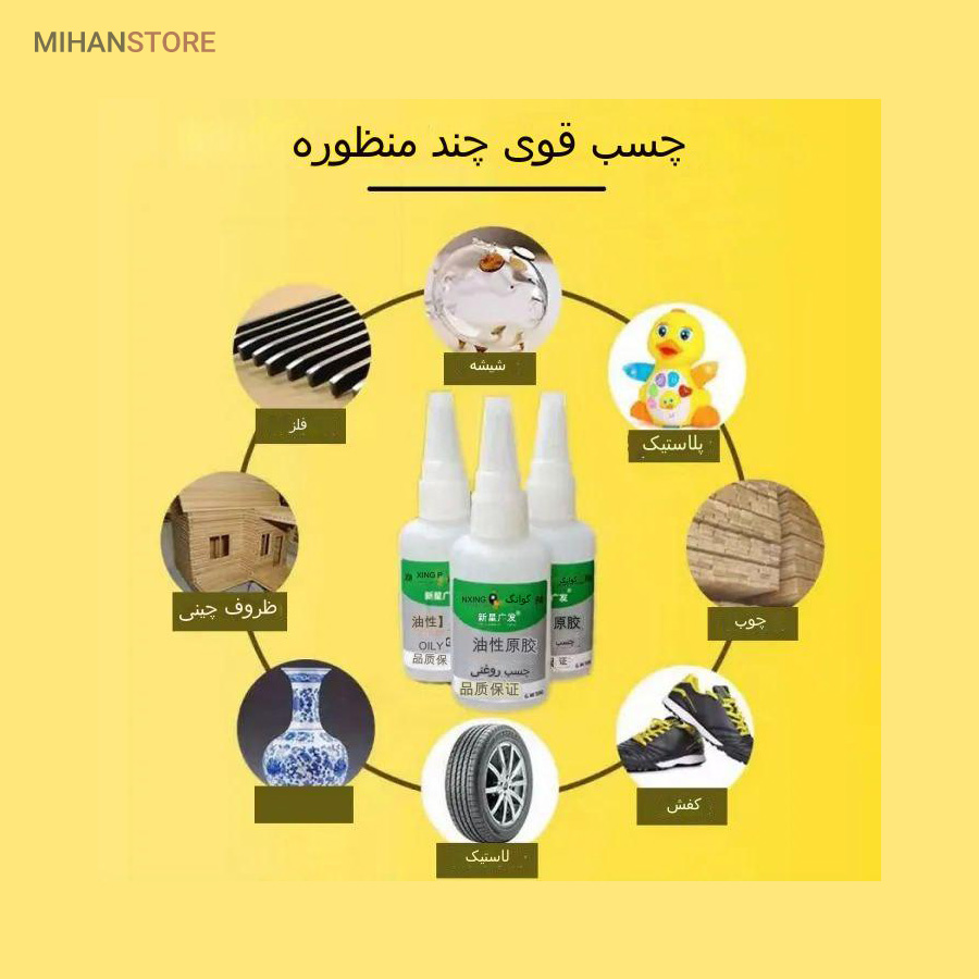 چسب قطره ای قوی از محصولات ساخت چین است که با کیفیت بسیار بالا از بهترین مواد تولید شده این چسب معروف به چسب قوی پلاستیک فلزات، شیشه، چینی، پارچه و الیاف و هر وسیله ای که فکرشو داشته باشید مناسب است.