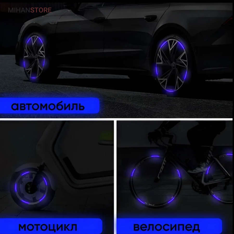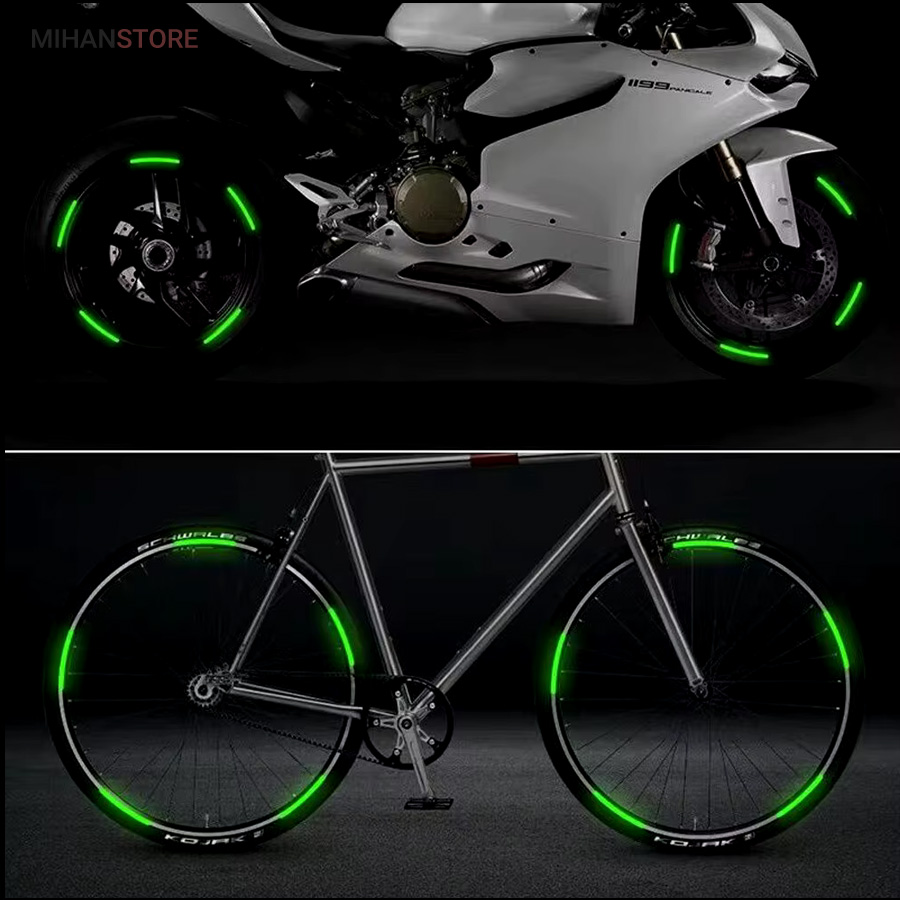 این برچسب ها رو روی رینگ و محیط تایر و لاستیک دوچرخه و یا ماشین میتونید بچسبونید ، در شب و تاریکی اثر درخشندگی شون علاوه بر زیبایی باعث هشدار و امنیت بالای شما هم میشه. مدل شب تاب در تاریکی با بازتاب نوری که قبلا جذب کرده در تاریکی مطلق هم از خودش نور ساطع می کنه.