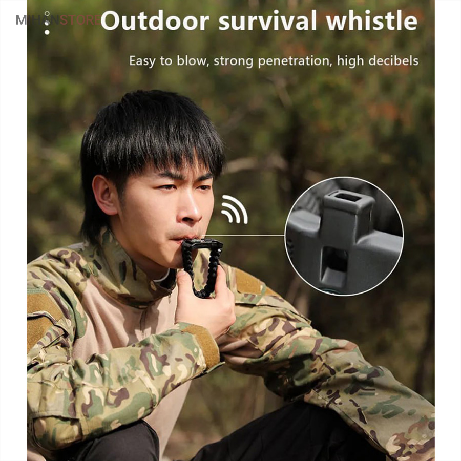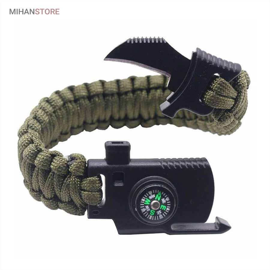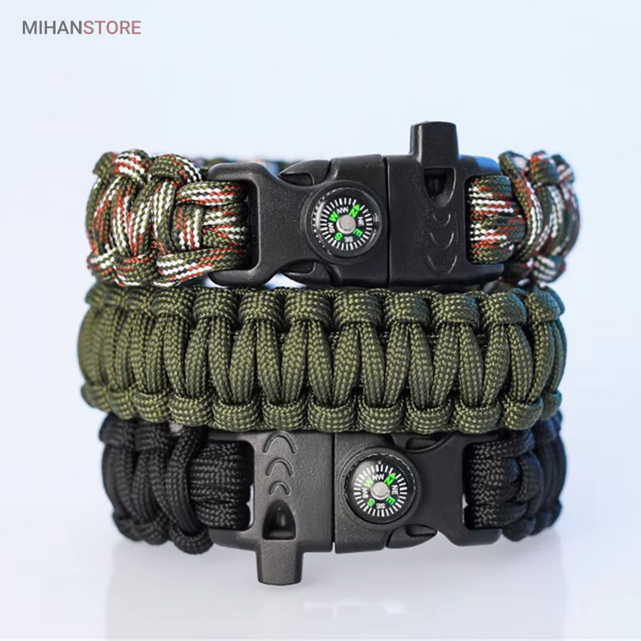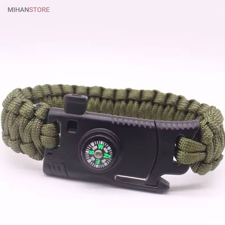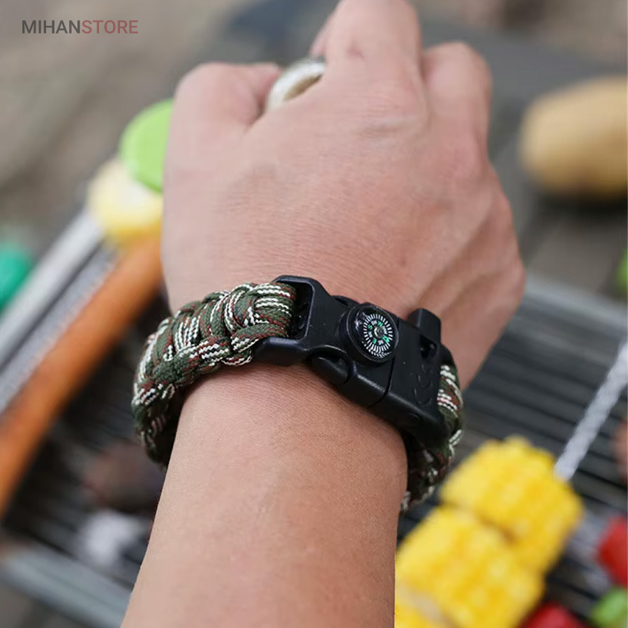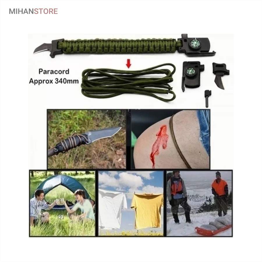 دستبند پاراکورد و نجات دارای وسایل ضروری برای بقا در طبیعت است، به وسیلۀ این دستبند می‌‌توانید به راحتی آتش روشن کنید، از ارتفاع پایین بیایید، مسیریابی کنید، ماهیگیری انجام دهید و… اگر به شکل دستبند پاراکورد و نجات نگاه کرده باشید متوجه می‌‌شوید که مانند یک طناب است، جالب است بدانید که طناب پاراکورد ساخته شده برای چتربازی هم مورد استفاده قرار می‌‌گیرد و از مقاومت و استحکام بسیار بالایی برخوردار است. مقاومت بالای این طناب به میزانی است که می‌‌توانید یک وزنه‌‌ی 200 کیلوگرمی را بدون نگرانی به آن متصل کنید، از طناب پاراکورد علاوه بر چتربازی می‌‌توان در ماهیگیری، بند آوردن خونریزی، درست کردن آتش،  فرود آمدن از ارتفاع، طناب نگهدارنده‌‌‌‌ی چادر، درست کردن پناهگاه و… نیز استفاده کرد.دستبند پاراکورد و نجات معمولا از 7 تا 9 رشته طناب با طولی 3 تا 4 متری تشکیل شده است که می‌‌توان برای مصارف مختلف در سفر از آن استفاده کرد. دارای ضروریات مربوط به یک سفر بوده و همچنین می‌‌تواند به دلیل زیبایی آن نیز مورد استفاده قرار گیرد، این وسیلۀ کاربردی می‌‌تواند کادوی بسیار مناسبی برای افرادی باشد که بسیار در طبیعت سفر می‌‌کنند. قطب نما، سوت اضطراری این سوت سطح سر و صدا را می‌تواند تا 110 db ایجاد کند و به امدادگران سیگنال دهد و چاقو که برای برش طناب و مواقع ضروری مورد استفاده قرار می‌گیرد و پشت چاقو در قسمت بالا هم دندانه‌هایی قرار دارد.
