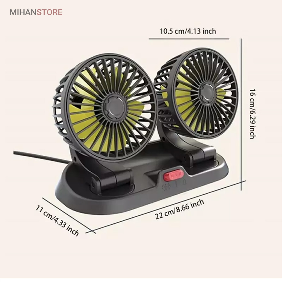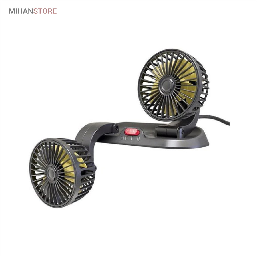 پنکه دو قلو فندکی خودرو یک وسیله کوچک، اما بسیار کاربردی و لازم، برای مواقعی که در داخل اتومبیل مشغول رانندگی و یا در حالت توقف احساس گرما کردید، بسیار کارآمد بوده و با وزن کمی که دارد براحتی قابل حمل می باشد. جنس بدنه پنکه  از پلاستیک فشرده بسیار مقاوم است، و هر فن دارای 5 پره می باشد. قدرت این پنکه خودرو 10 وات و حداکثر جریان آن 1 آمپر می باشد. از ویژگیهای دیگر این پنکه قابلیت تنظیم ارتفاع و چرخش آن تا زاویه 360 درجه می باشد و با پایه ای که روی آن طراحی شده است می توانید براحتی روی داشبورد خودروی خود بدون اینکه فضای زیادی را آشغال کند بگذارید. پنکه دو قلو فندکی خودرو درای قدرت باد بسیار عالی در نوع خود بوده و با دکمه پاور 2 حالته میتوان از دو حالت باد کم سرعت و پر سرعت آن استفاده کنید. منبع تغذیه پنکه دو قلو فندکی خودرو جا فندکی خودرو بوده و بسیار کم صدا و دارای کیفیت ساخت بسیار بالایی است.