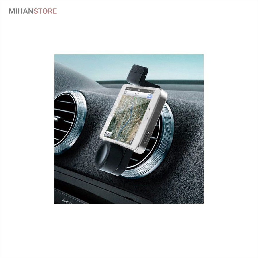 با استفاده از این پایه نگه‌دارنده کوچک، می‌توانید گوشی موبایلتان را روی پره‌های دریچه تهویه هوای داخل خودرو متصل کنید و آن را در مقابل خود داشته باشید. این پایه مکانیزم ساده‌ای دارد و نصب و برداشتن آن‌هم کار سختی نیست. فک‌های نگه‌دارنده آن به‌صورت کشویی از 55 تا 84 میلی‌متر باز می‌شوند و می‌توانند گوشی‌های 3.5 تا 6 اینچی را درون خود نگه‌دارند. پشت این فک‌ها، زبانه‌های پلاستیکی کوچکی تعبیه‌شده‌اند که با اندکی فشار به پره‌های دریچه تهویه داخل خودرو متصل می‌شوند. به کمک همین زبانه‌ها می‌توان از این پایه نگه‌دارنده برای استفاده رومیزی (به‌عنوان استند گوشی) هم استفاده کرد. با خرید و نصب پایه‌های نگه‌دارنده خودرویی، تمرکز بیشتری بر رانندگی خود خواهید داشت.