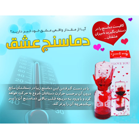 با در دست گرفتن این دماسنج زیبا در دستانتان مایع درون آن برحسب حرارت دستانتان شروع به حرکت خواهد کرد و با ورود به دریچه قلب بالایی هرچه آن را پرتر کند،شما از آزمون عشق سربلند تر بیرون آمده اید! در موارد فوق العاده مایع قرمز رنگ از درون قلب بالایی به سمت بیرون فواره خواهد زد و اینجاست که عشقتان باید قدر شما را بداند!