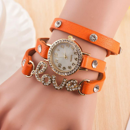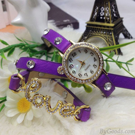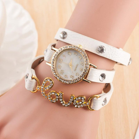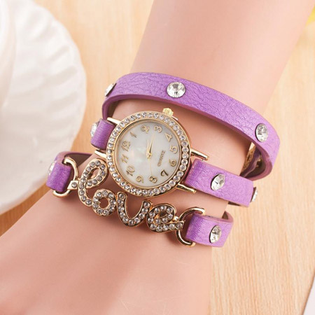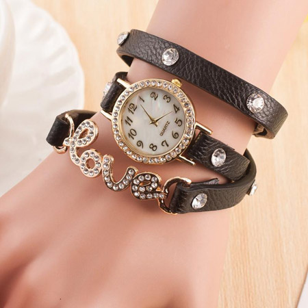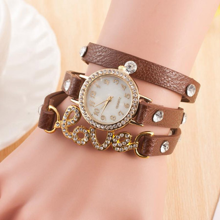ساعت زنانه نگین دار طرح Love ساعت زنانه نگین دار طرح Love