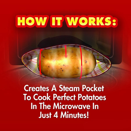 - برای پخت بهتر باید بر روی سیب زمینی قبل از پخت با چاقو شکاف هایی را ایجاد نماییم ، کیسه پخت سیب زمینی تنوری پوتیتو اکسپرس Potato Express سریعترین و آسانترین راه برای پخت سیب زمینی تنوری در مایکروویو است.
