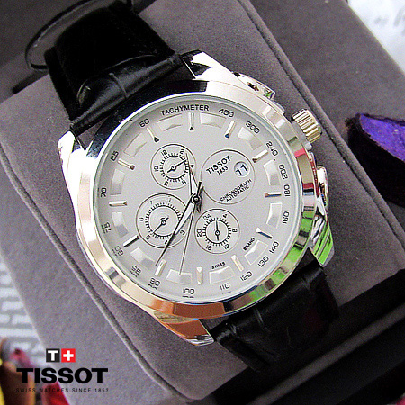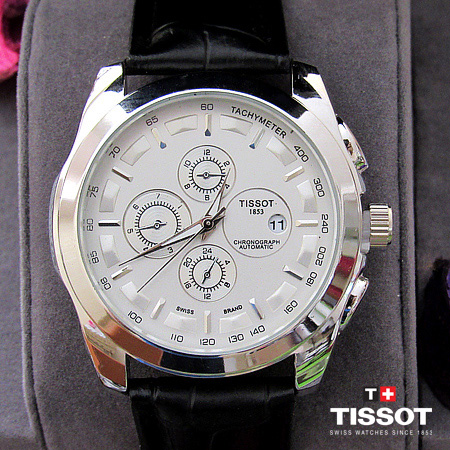 ساعت مچی تیسوت T1853 یکی از جدیدترین مدل های عرضه شده کمپانی معتبر تیسوت می باشد. این ساعت دارای بند چرم بسیار با کیفیت و صفحه شیشه ای ضدخش می باشد که در 2 رنگ بند مشکی و قهوه ای و همچنین صفحه سفید و مشکی عرضه شده است. این ساعت دارای تقویم روز شمار می باشد و تا 80 درصد نیز ضد آب است. هم اکنون می توانید ساعت مچی تیسوت T1853 را همراه با جعبه شکیل و 6 ماه گارانتی تعویض با قیمت استثنایی از فروشگاه میهن استور سفارش دهید.