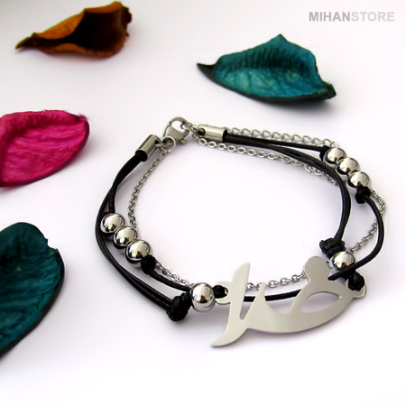 دستبند چرم و استیل طرح خدا دستبند چرم و استیل طرح خدا