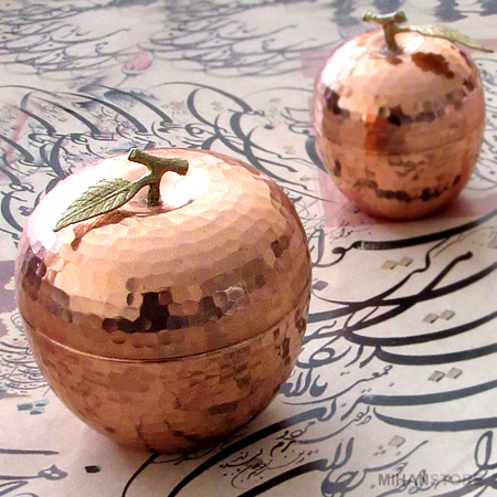 چای یکی از نوشیدنی‌هایی است که جایگاه ویژه‌ای در بین ما ایرانیان دارد، تا حدی که دلمان می‌خواهد با استفاده از ظروف چای‌خوری زیباتر، از این نوشیدنی گرم لذت بیشتری ببریم. یک قندان مسی دست‌ساز می‌تواند جلوه‌ی زیبایی به سینی پذیرایی چای‌مان بدهد. سیبی زیبا از جنس مس که در نگاه اول حس کنجکاوی را برمی‌انگیزد. جزییات در ساخت این قندان کاملا رعایت شده؛ فرمی که کاملا شبیه به میوه‌ی سیب بوده و حتی برگ و ساقه‌ی سیب هم به آن اضافه شده است. ارتفاع قندان حدود 9 سانتی‌متر است و وزنی در حدود 150 گرم دارد. نیمه‌ی بالای سیب، درب قندان محسوب می‌شود و با برداشتن درب، فضای قرار دادن قند را می‌بینیم. دهانه‌ی این فضا دایره‌ای‌شکل است و قطری در حدود 8 سانتی‌متر دارد. روی قسمت خارجی قندان، دایره‌های کوچکی دیده می‌شود که با ضربه‌های چکش ایجاد شده‌اند و در اصطلاح به این عمل چکش‌کاری می‌گویند. این قندان مسی برای علاقه‌مندان به هنرهای سنتی و محصولات دست‌ساز انتخابی مناسب به نظر می‌رسد. مس به دلیل خاصیت شکل‌پذیری و چکش‌خوار بودن از قدیم برای ساخت ظروف استفاده می شد. حرارت در ظروف مسی به‌خوبی پخش می‌شود و این موضوع باعث خوشمزه‌تر شدن و به اصطلاح جا افتادن غذا می‌شود. البته نظرهای مخالف هم در مورد فواید این ظروف وجود دارد. شاید بهتر باشد از این ظروف برای پخت همه‌ی وعده‌های غذایی استفاده نکنیم و استفاده از آن را به چند بار در هفته محدود کنیم. همچنین در این ظرف‌ها تا حد امکان نباید غذاهای اسیدی یا ترش پخت؛ چون باعث از بین رفتن پوشش قلع آن می‌شود. همچنین برای شست‌وشوی این ظروف بهتر است آن‌ها را با دست بشوییم و از قرار دادن آن در ماشین ظرف‌شویی خودداری کنیم.